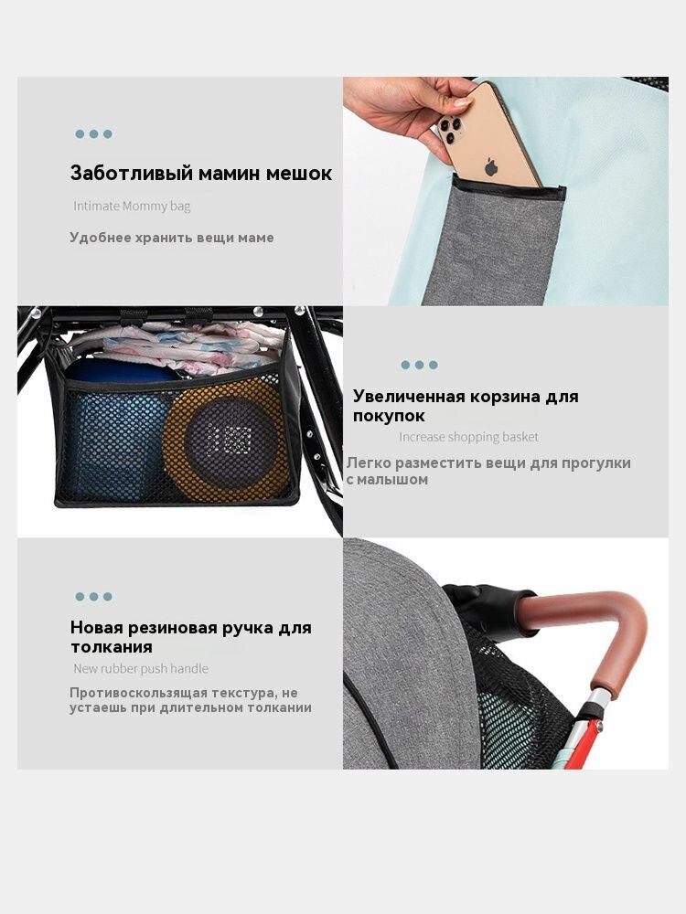 Регулируемая ручка (65-105 см) подойдет родителям ростом 150-195 см. Вес шасси — 8.2 кг с рекордным показателем в категории 3-в-1 колясок. Хозяйственная сумка объемом 12 л на ручке выдерживает до 5 кг груза.