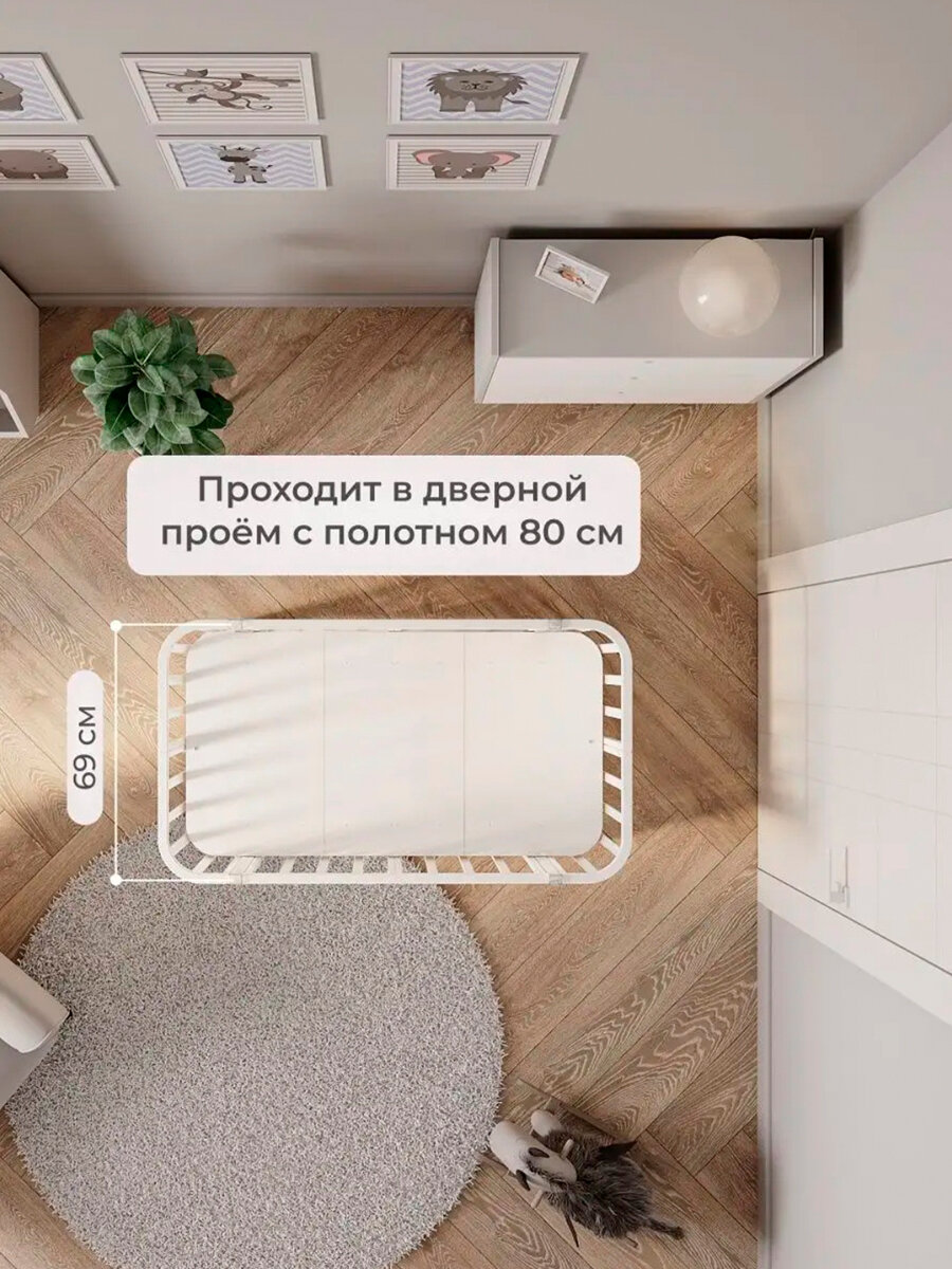- Стандартный размер 64×79 см совместим с ортопедическими матрасами российских (BabyExpert, Sonline) и европейских производителей (LaDelice, Feretti).