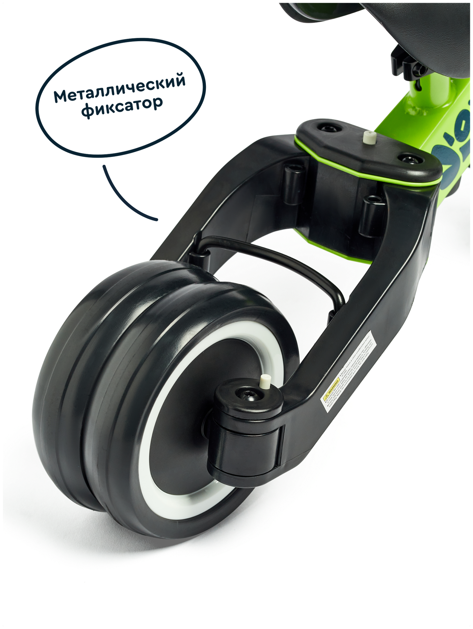 - Трёхколёсная конфигурация с системой блокировки руля для первых самостоятельных поездок