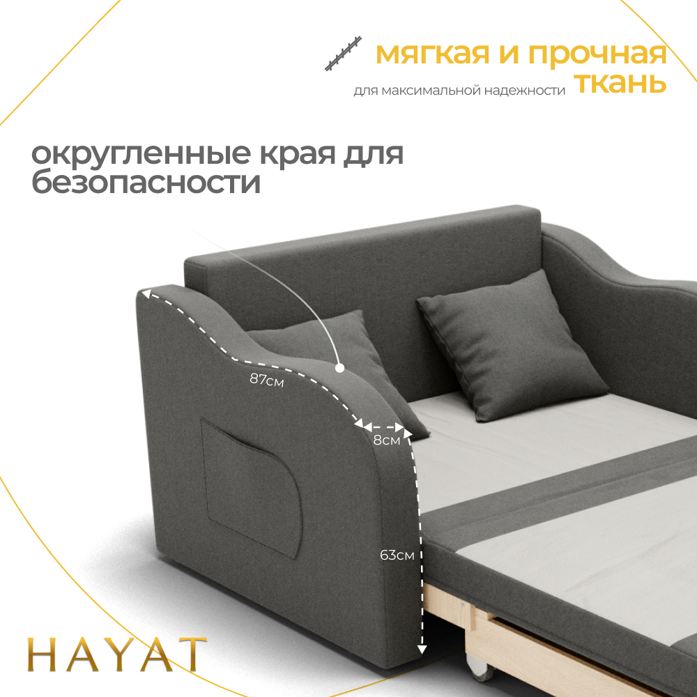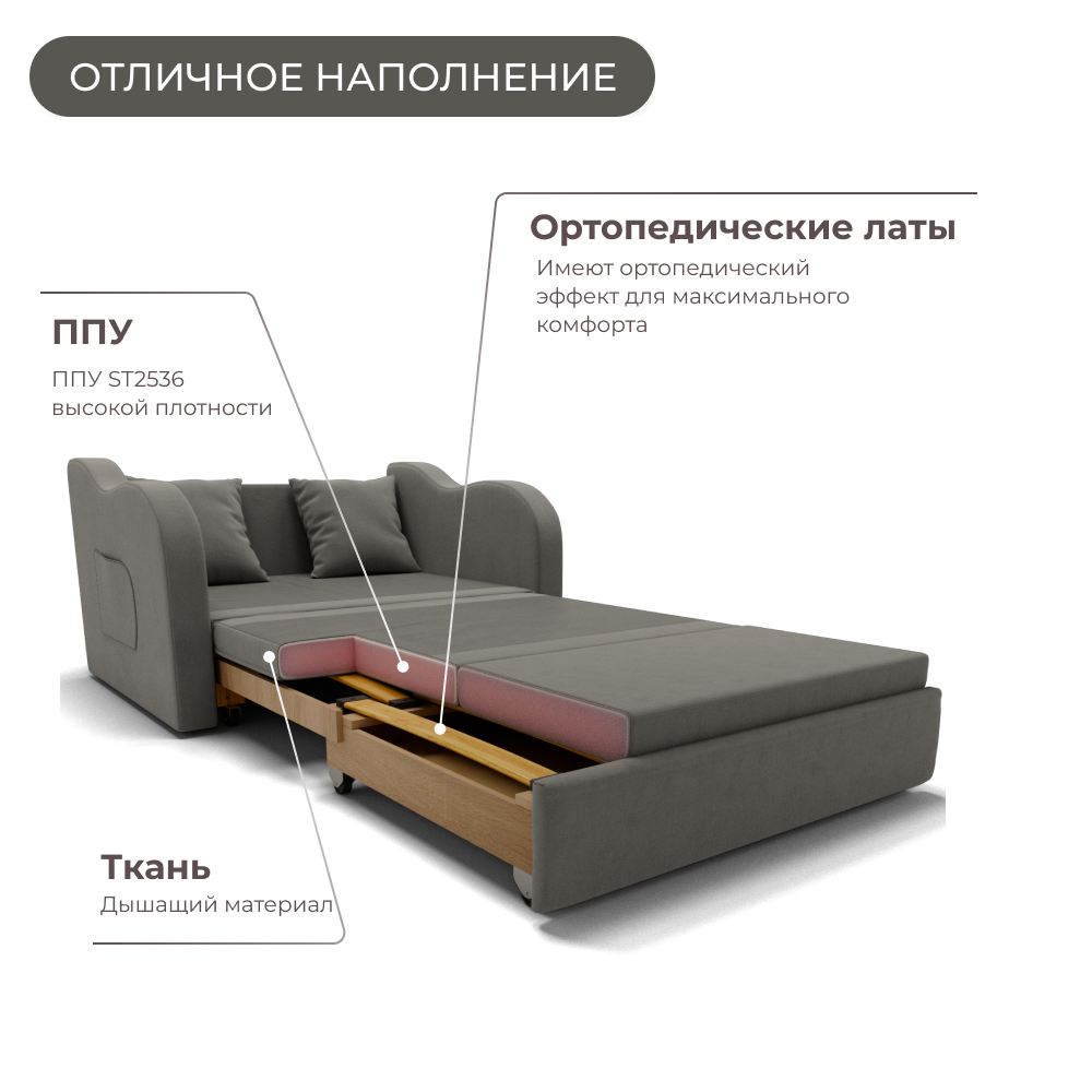 - Раскладное спальное место: 140×200 см с ортопедическим основанием