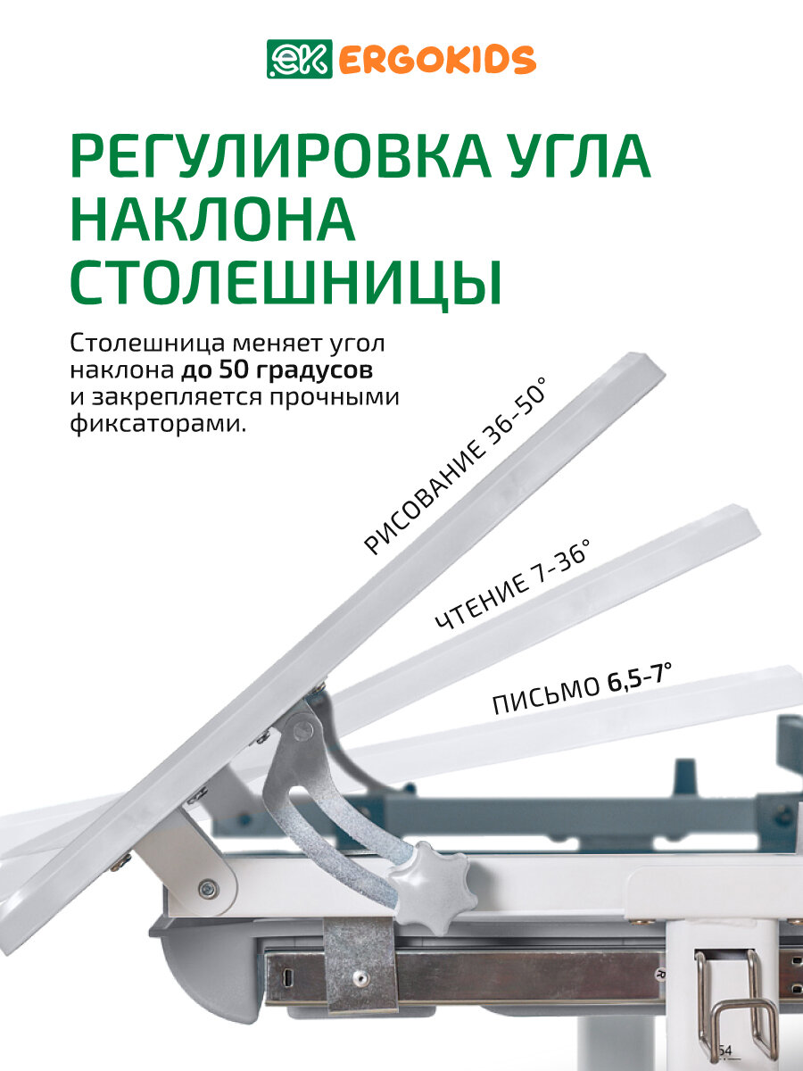 Наклон столешницы регулируется в диапазоне 0-30° для разных задач: