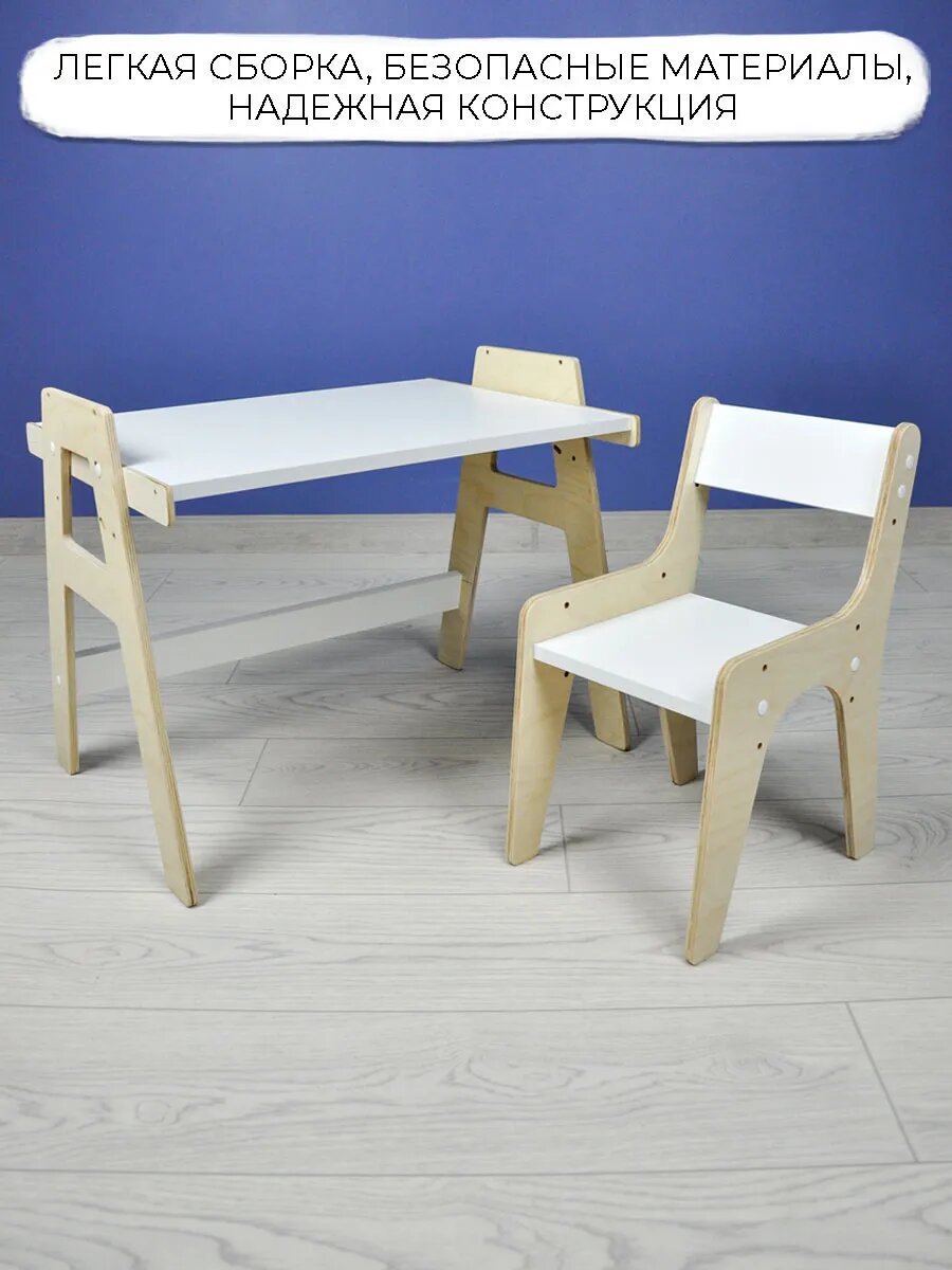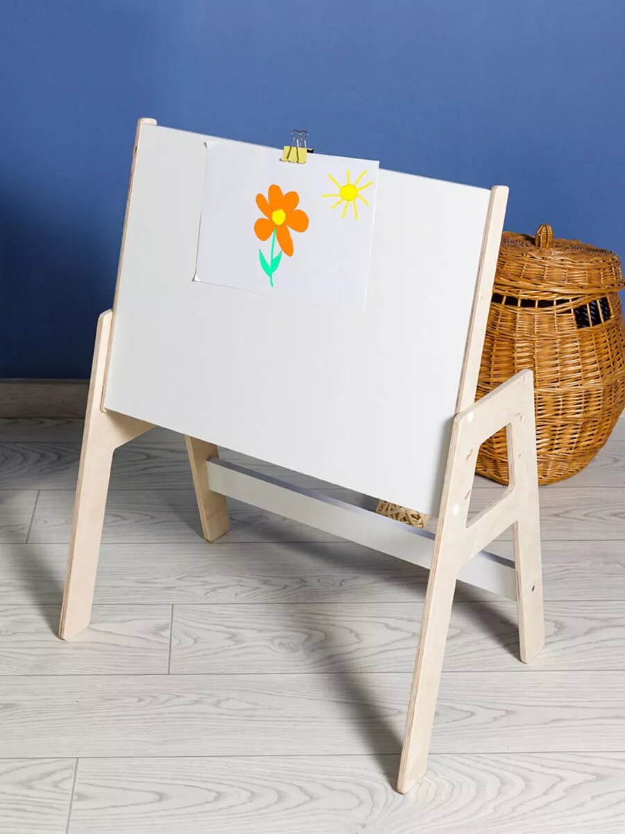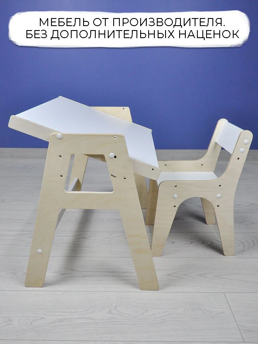 Растущий стул и стол мольберт сочетает мебельную фанеру класса E1 и ЛДСП толщиной 16 мм, что обеспечивает: