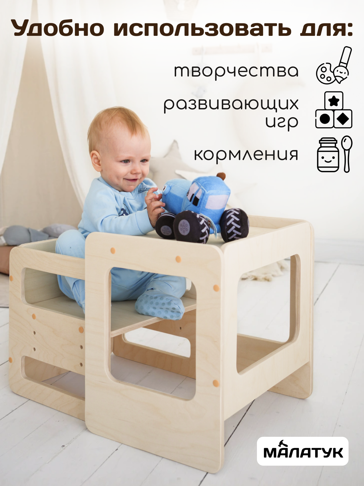 | 10-18 мес | Фиксатор спины 120° | Столешница с бортиками |