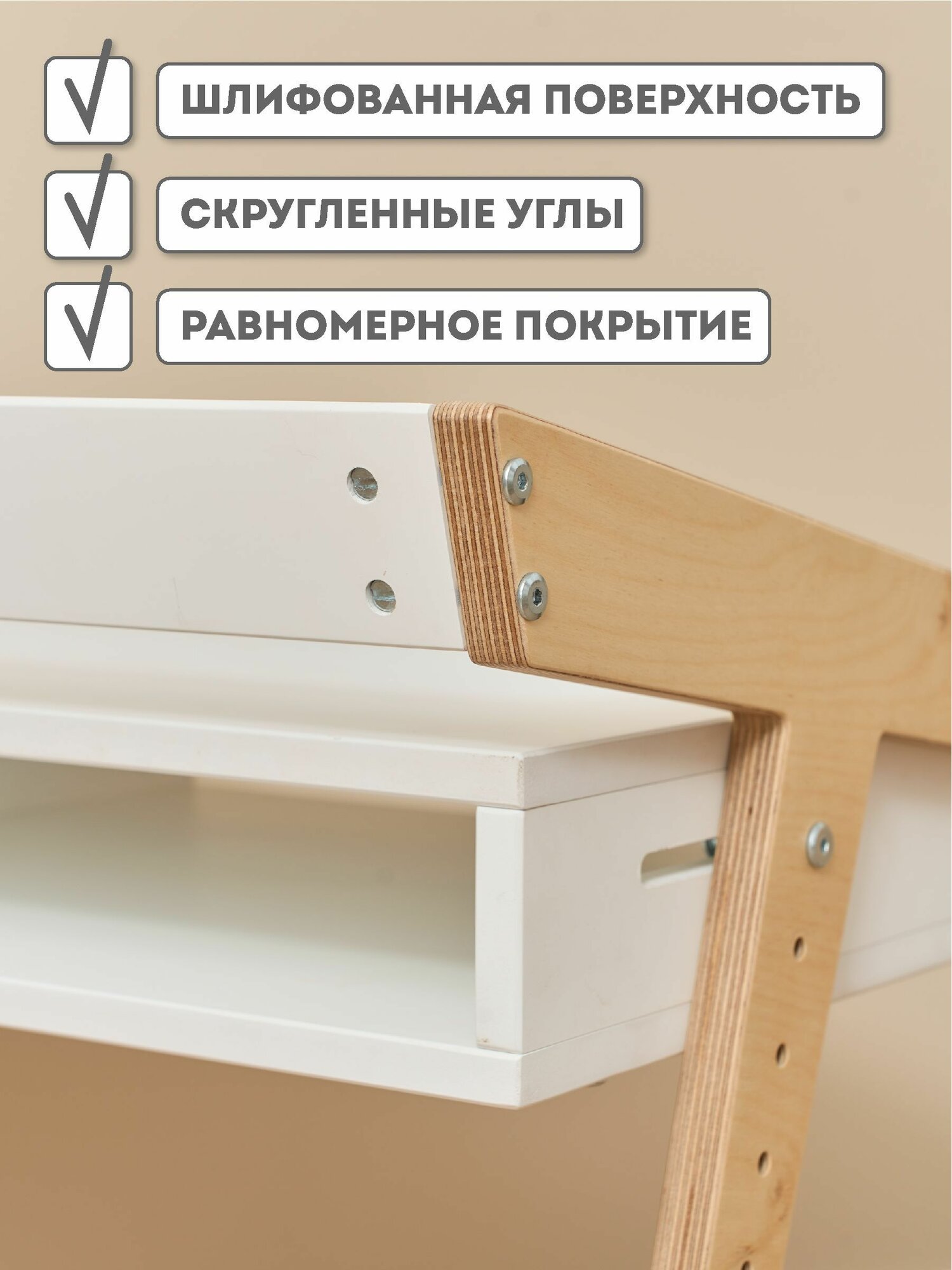 - Массив бука + влагостойкий МДФ: Сочетание природной прочности древесины и устойчивости кофейным пятнам и акварели. Плотность покрытия - 650 г/м² (превышает стандартные 450 г/м²).