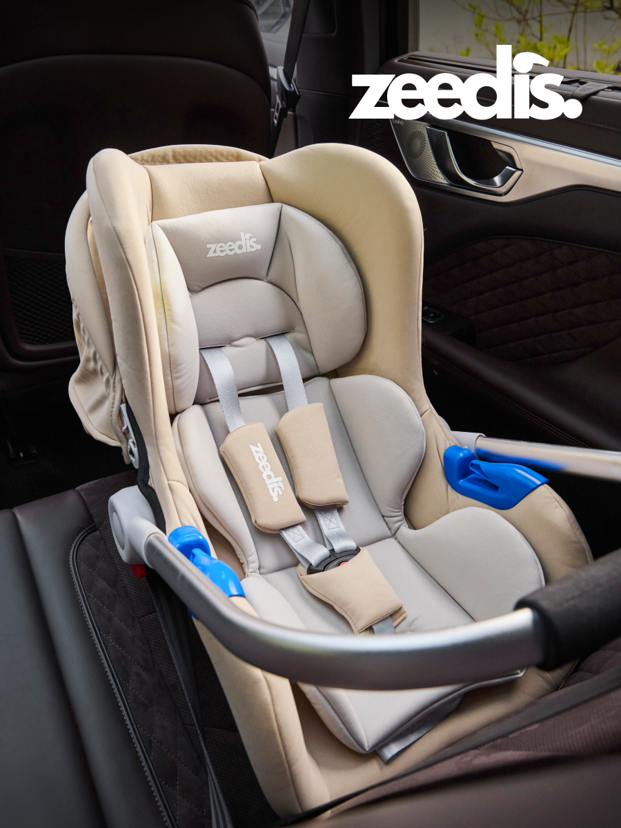 - Анатомическая вставка с защитой головы поддерживает позвоночник новорожденного в правильном положении