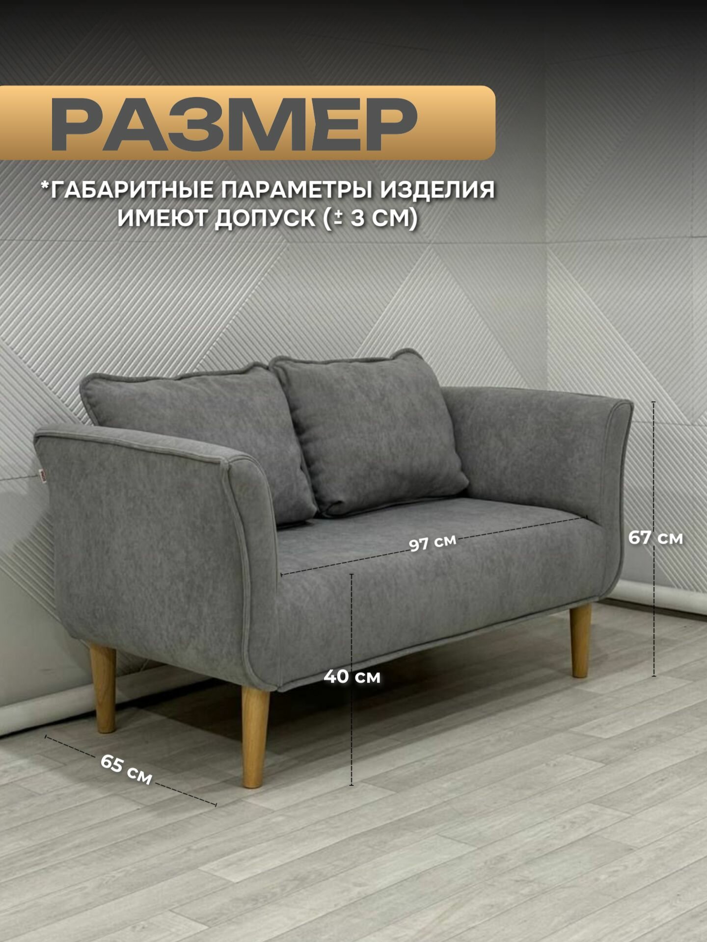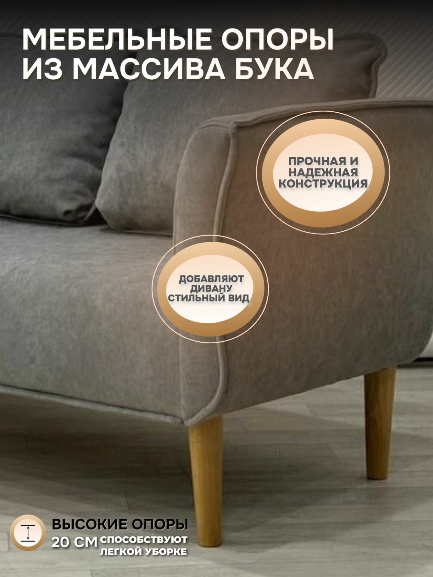 - Высота ножек 15 см из массива бука создает воздушный визуальный эффект и упрощает уборку под диваном
