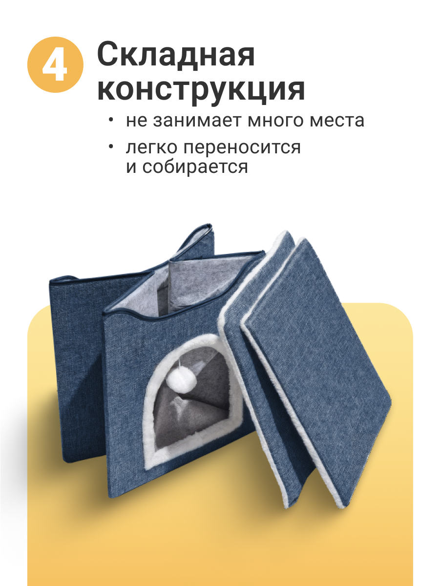 Складной механизм позволяет трансформировать домик из компактного чемодана (60×40×20 см) в двухуровневый комплекс (95×60×50 см) за 30 секунд. Каркас из усиленного пластика выдерживает нагрузку до 15 кг на верхнем ярусе и 12 кг на нижнем – оптимально для кошек крупных пород и мелких собак (шпиц, йоркширский терьер).