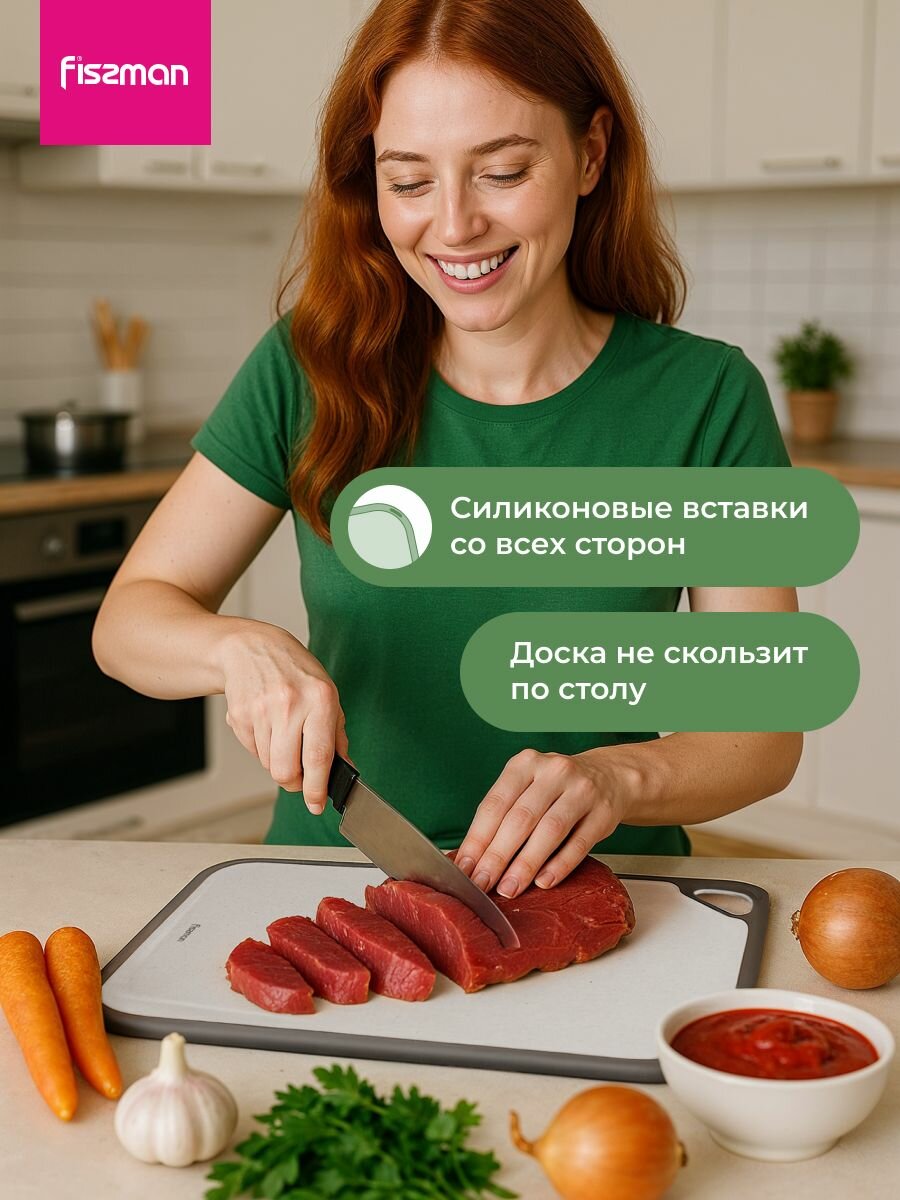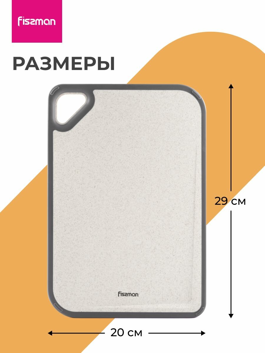 Пластиковая разделочная доска FISSMAN 20 см создана из высокоплотного полипропилена с антимикробными добавками. Материал обеспечивает: