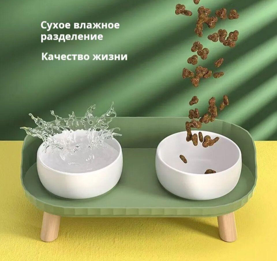 Двойная конструкция миски решает проблему одновременного кормления и поения животного. Две секции предотвращают смешивание сухого корма и воды - это важное гигиеническое преимущество согласно ветеринарным рекомендациям Ассоциации практикующих ветеринарных врачей. Глубина 11 см в каждой чаше оптимальна для котов и мелких пород собак.