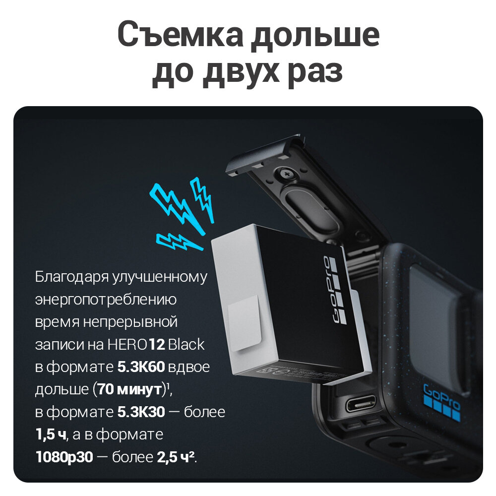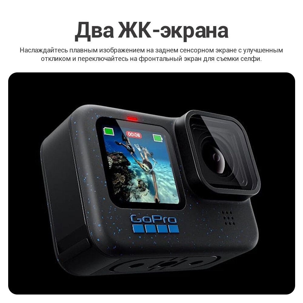 Корпус на 42% состоит из переработанных материалов (данные экологического отчета GoPro за 2023). Программа лояльности GoPro Plus даёт скидку 30% на аксессуары и облачное хранние видео 4K.