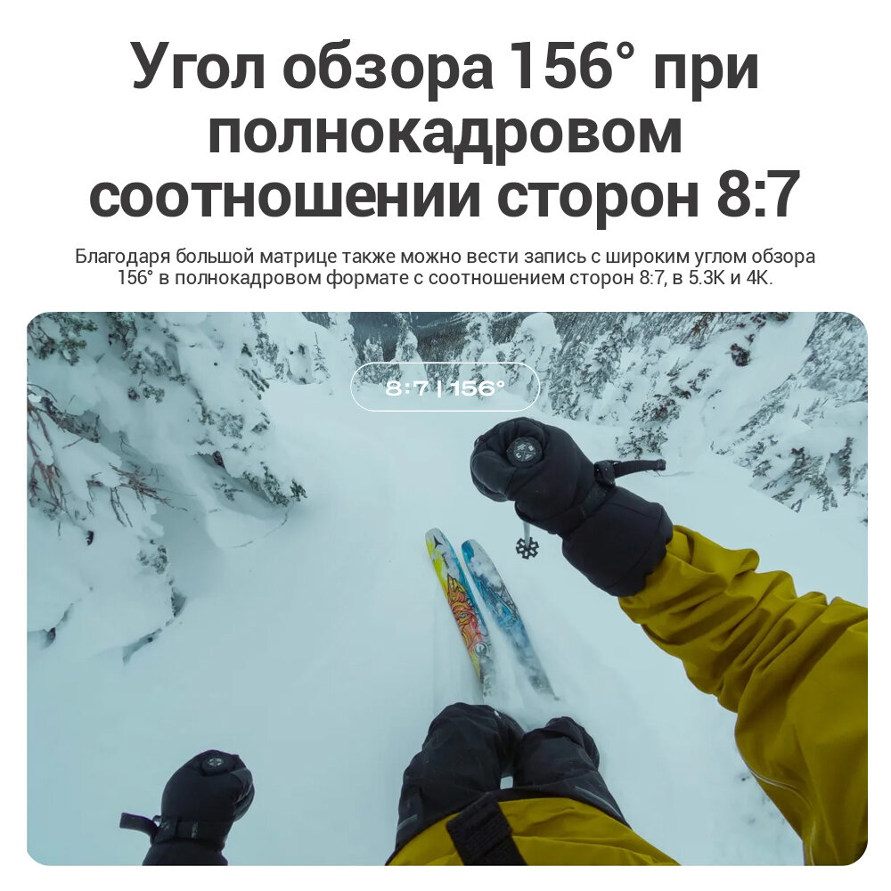 - Против Insta360 ONE RS: лучшая детализация в 5.3К формате и водонепроницаемость до 10м без бокса