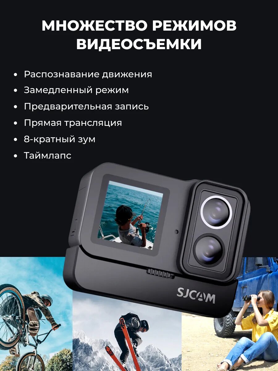 - Приложение SJCAM Zone синхронизирует отснятый материал за 2 клика через Wi-Fi 5 ГГц