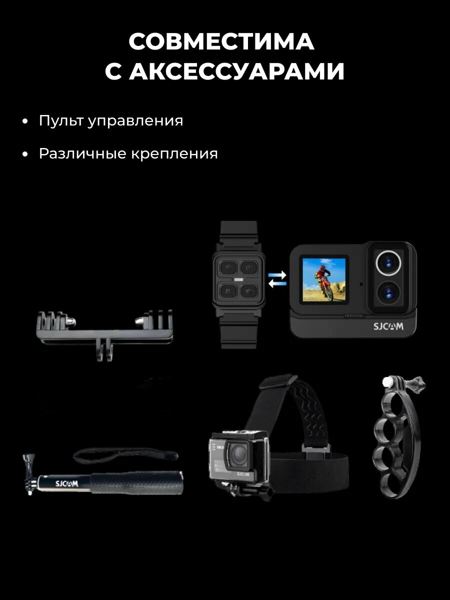 В базовую поставку входит 5 типов креплений для шлема, руля, груди и монопода. Опционально доступны выносные микрофоны (до 5м) для чистого звука двигателей. Чехол с влагопоглотителем предотвращает запотевание линз при резкой смене температур.