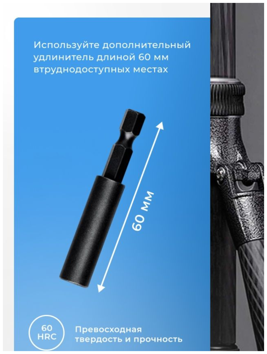 | Магнитный держатель бит | Удерживает насадки весом до 15 г даже при вибрации |