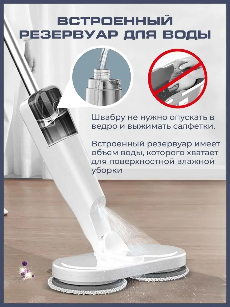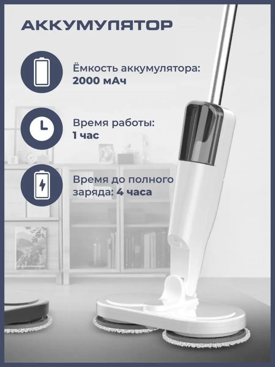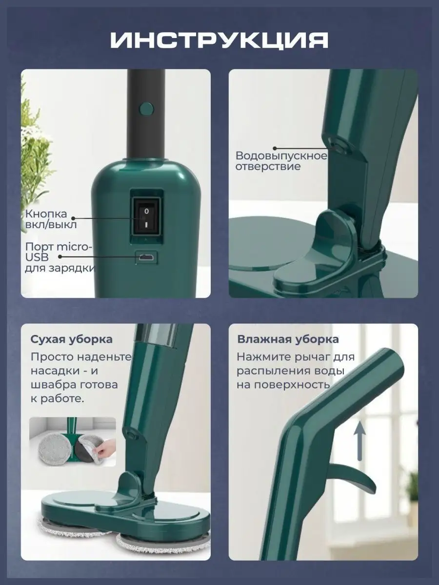 Зеленая электрическая швабра для влажной уборки: автономная работа 60 минут