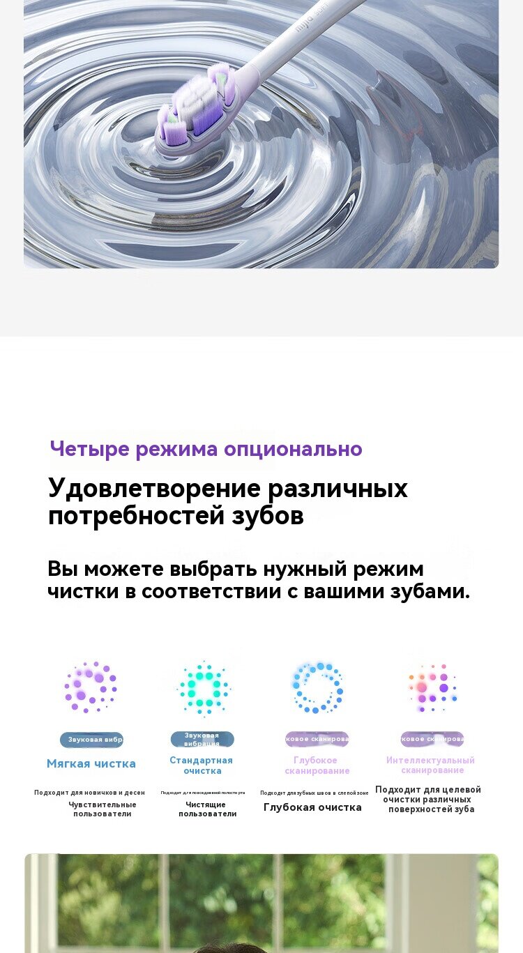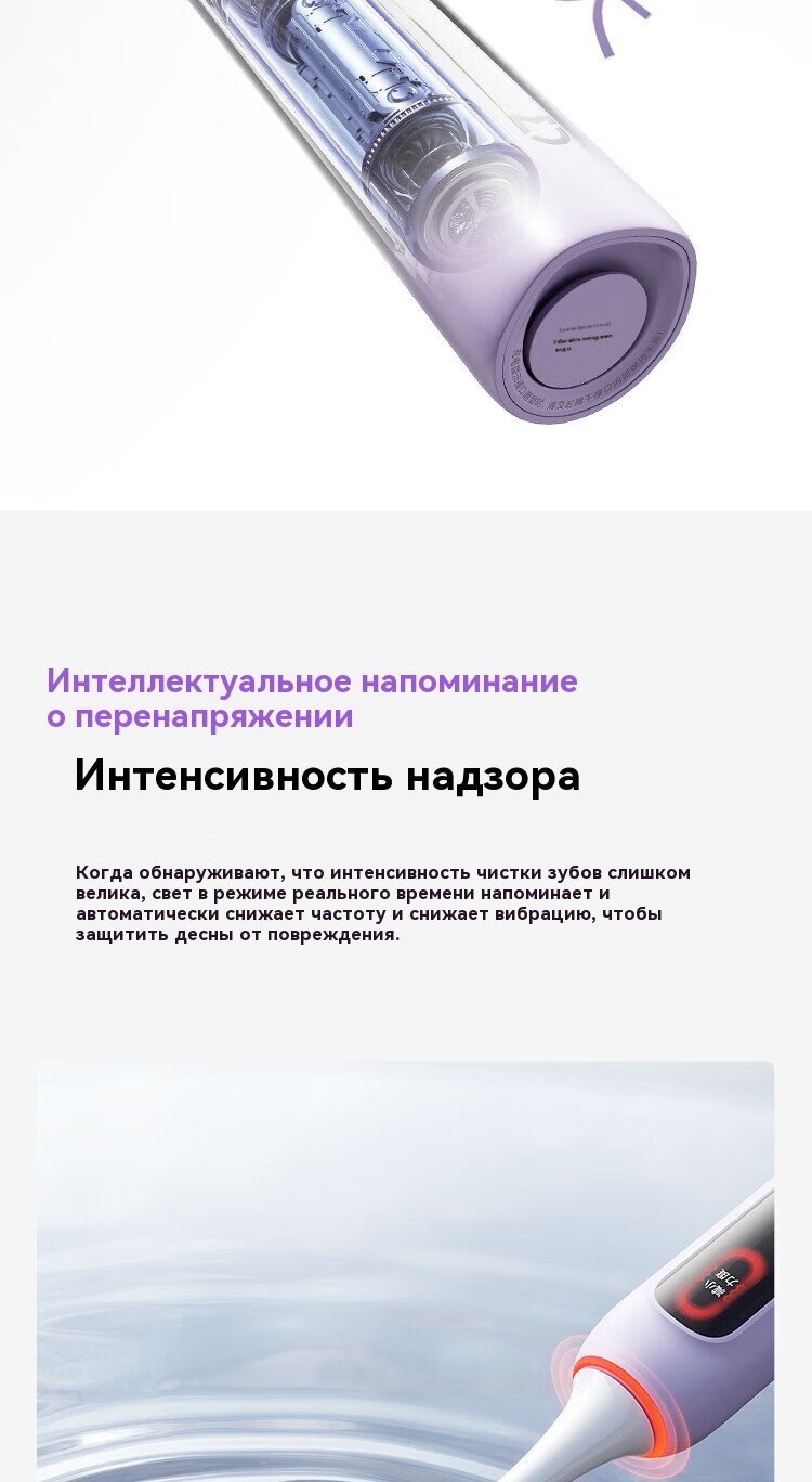 - Прибор автоматически снижает мощность при чувствительных деснах