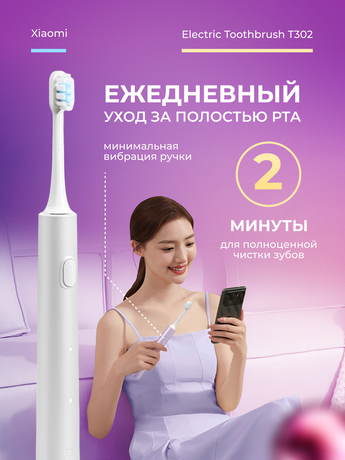 Ультразвуковая щётка Xiaomi T302 создаёт 31,000 колебаний в минуту, удаляя до 15% больше налёта по сравнению с обычной мануальной чисткой (данные клинических испытаний Mi Labs). Встроенный градуированный таймер разделяет процедуру на четыре 30-секундных интервала для обработки разных зон рта.