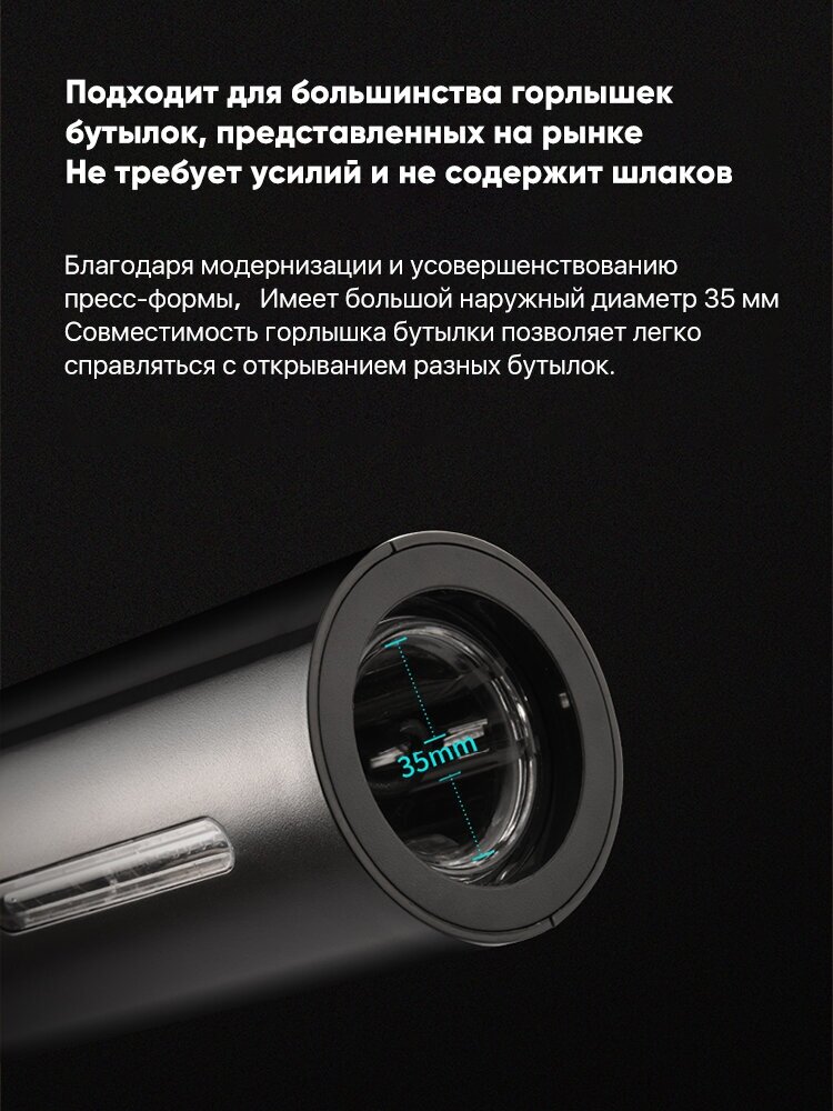 Автоматический штопор Xiaomi CJ-TZ08 решает проблему физических усилий при открытии бутылок. В отличие от ручных аналогов типа "бабочки" или "сомелье", его мотор мощностью 5W и крутящий момент 3.2 Н·м извлекают пробку за 4 секунды одним нажатием кнопки. Эргономичная резиновая рукоятка с противоскользящим покрытием обеспечивает комфортный захват даже мокрыми руками.