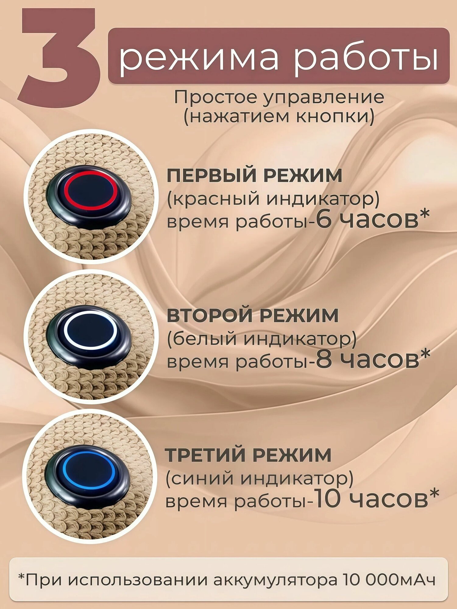 Трехуровневая система обогрева позволяет выбрать комфортную температуру в диапазоне 30-60°C. Максимальный нагрев достигается за 15 минут благодаря трехзонному распределению тепла с усиленными нагревательными элементами по краям.