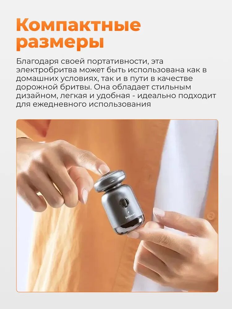 За счет компактных габаритов (65×45×25 мм) устройство превосходит классические электробритвы Braun MobileShave M90 по удобству транспортировки. Корпус в ударопрочном пластике с оранжевым покрытием соответствует экологическим стандартам вторичной переработки.