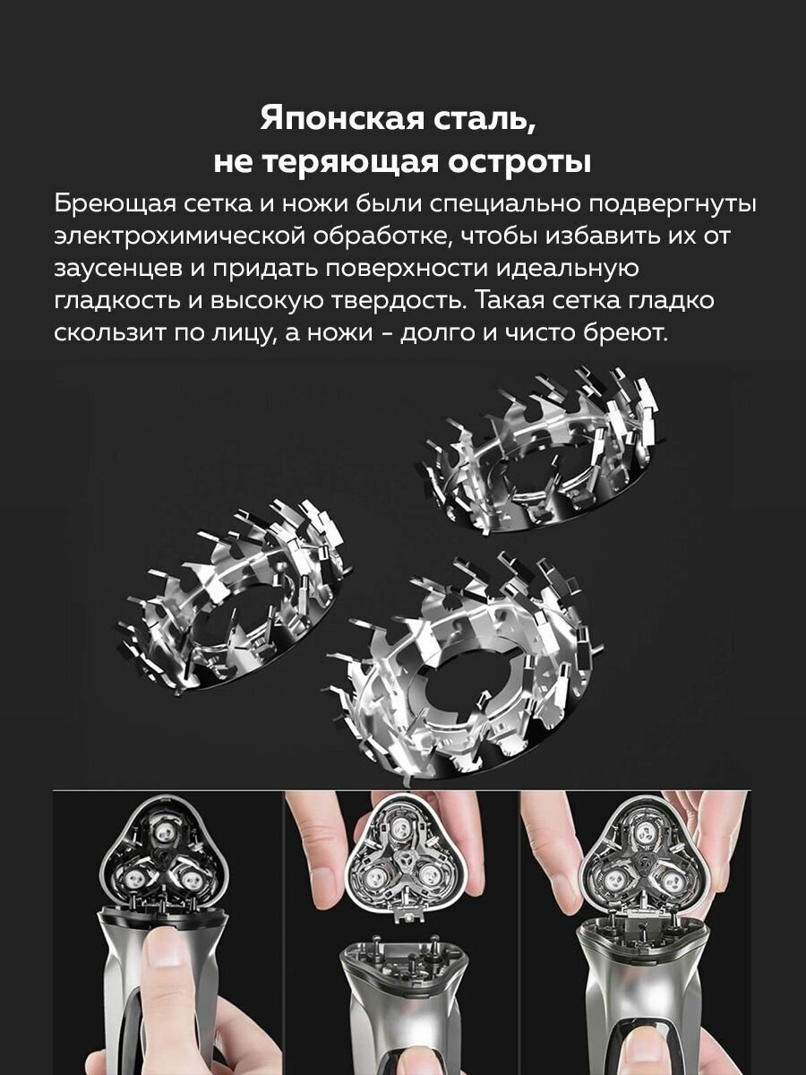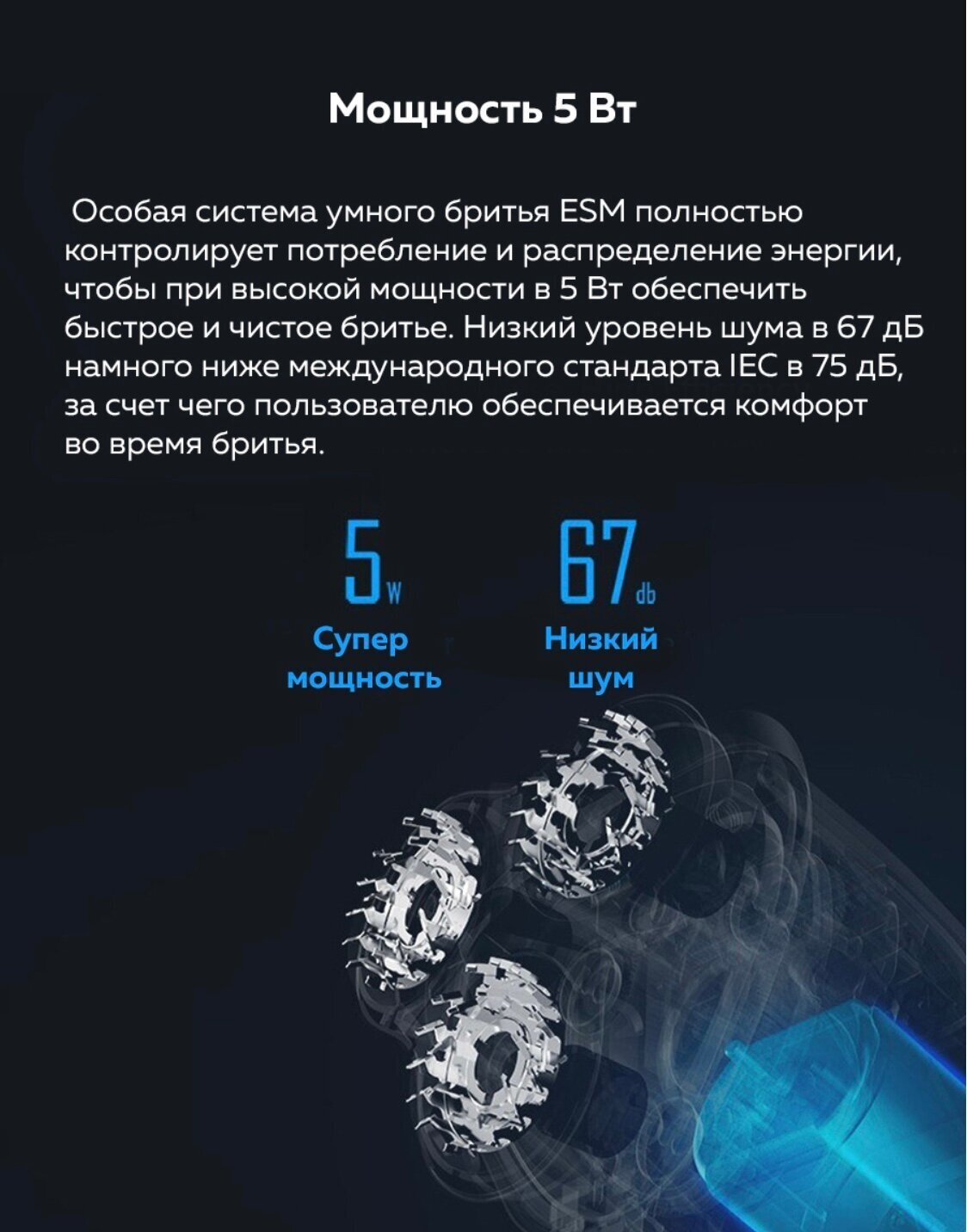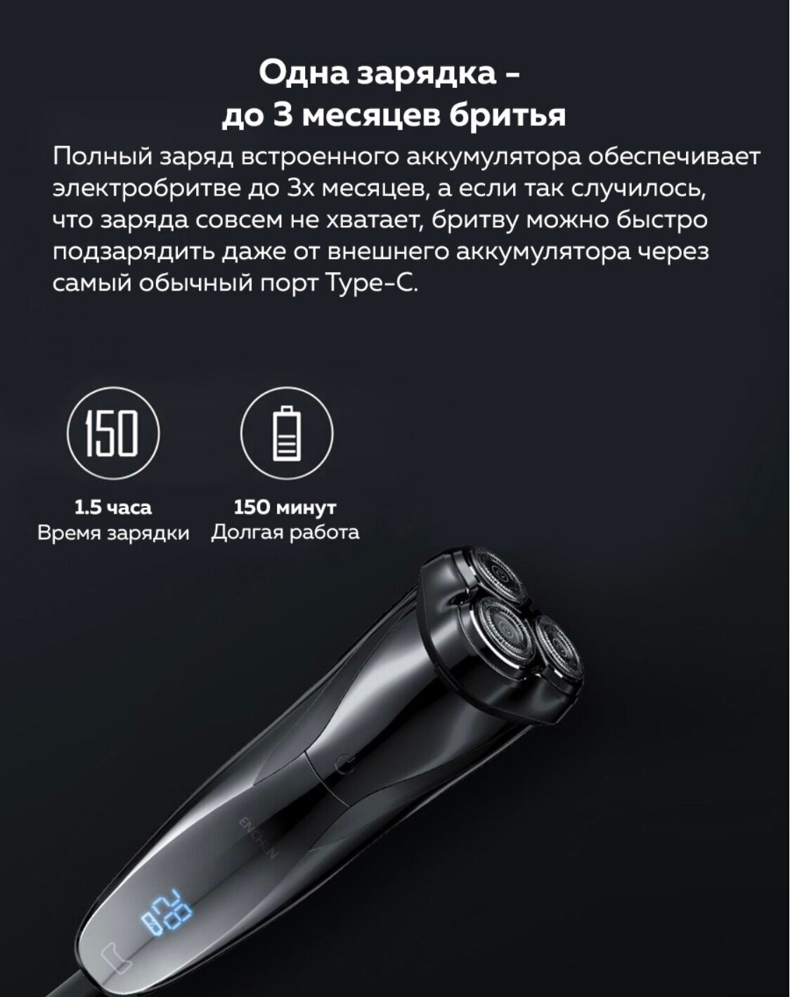 Электробритва ENCHEN BlackStone 3 оснащена двойной роторной системой с плавающими головками. Каждый блок с 54 микротройными лезвиями адаптируется к контурам лица: