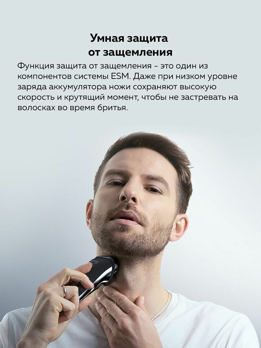 - Удаление волос до 0.05 мм — тройные лезвия захватывают даже густую щетину без дергания