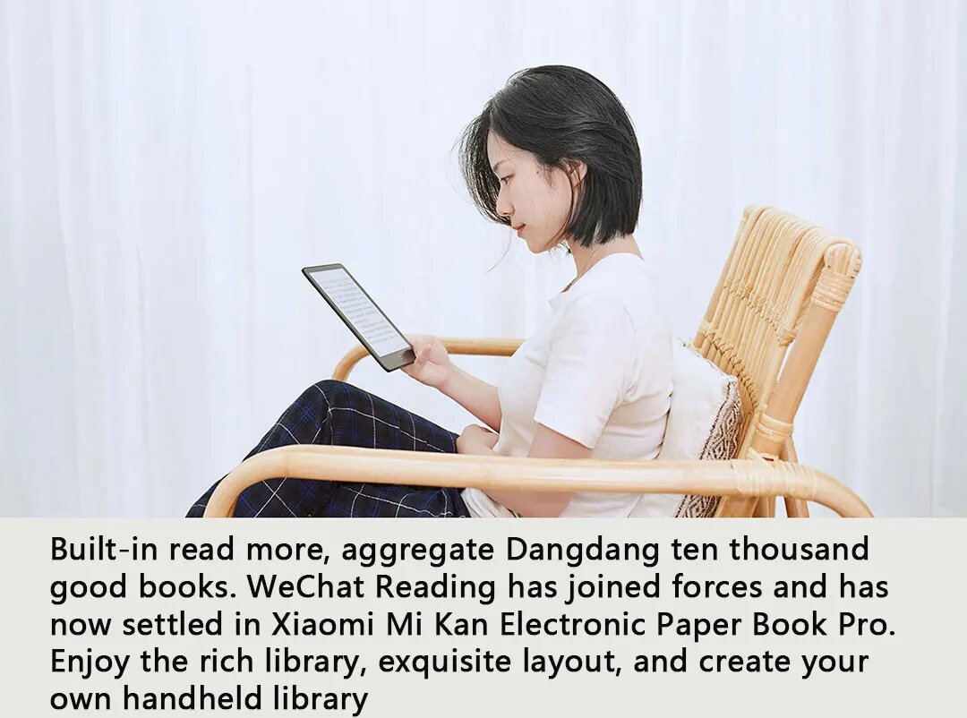 Электронная книга Xiaomi Multiview Pro оснащена 7.8-дюймовым экраном E-Ink Carta 1200 с разрешением 1872x1404 пикселей. Устройство весит 225 грамм при толщине корпуса 7 мм — такие параметры обеспечивают комфортное чтение одной рукой в течение 2-3 часов. Рельефная задняя панель из мягкого пластика предотвращает выскальзывание, а равномерное распределение веса между экраном и батареей исключает утомление кисти.
