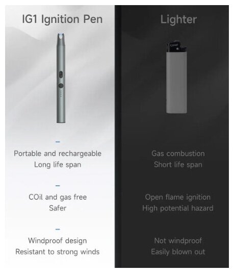 | Параметр | Обычная зажигалка | ATuMan IG1 |