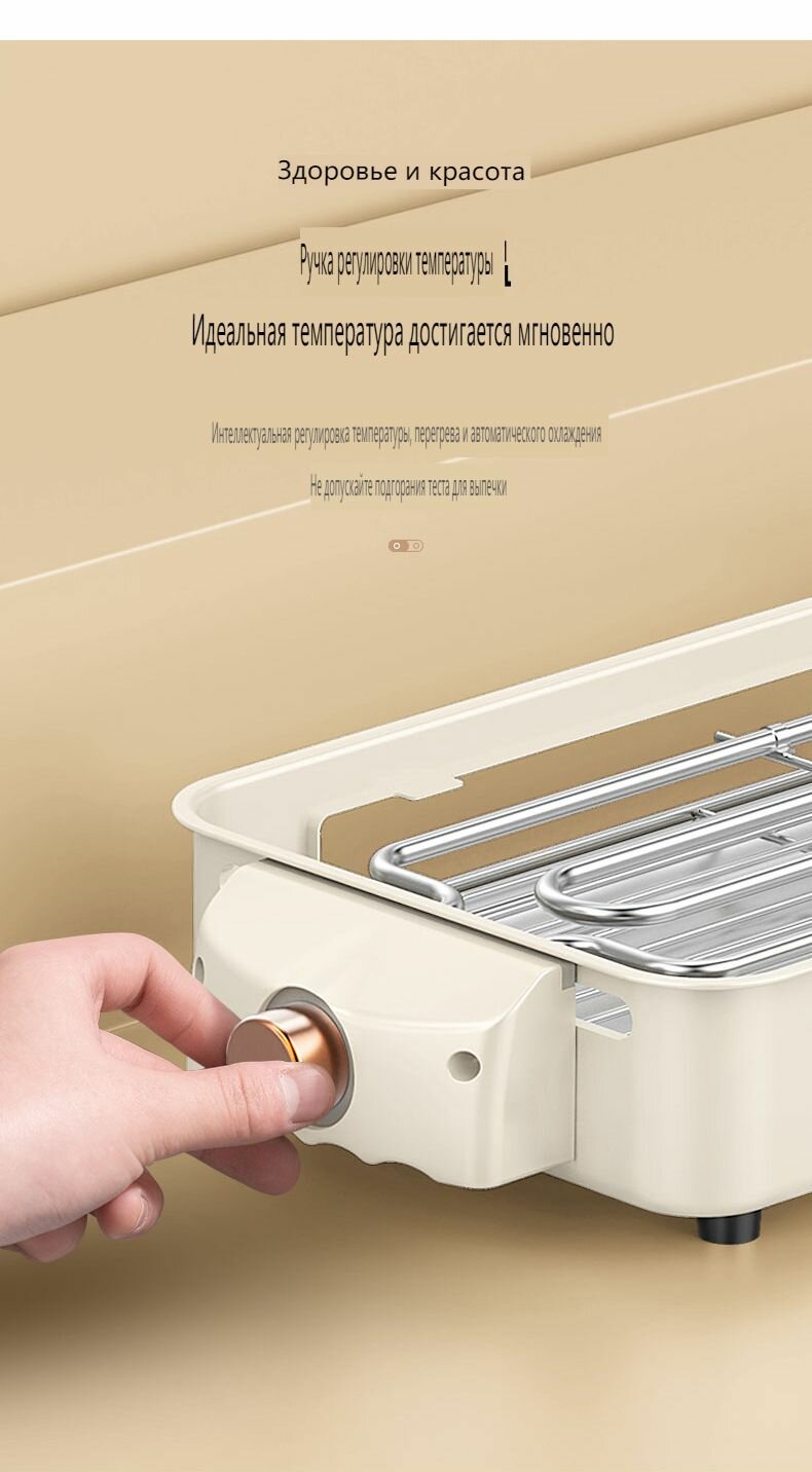 Механический терморегулятор с диапазоном 150-300°С позволяет выбрать режим для разных видов мяса: 180°С для курицы, 220°С - для свинины. Встроенный таймер с автоотключением через 120 минут исключает риск пережарки.