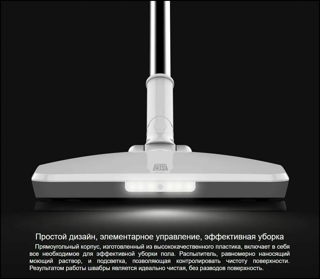 Электрошвабра Shenzhen Wontech XIAOMI SWDK D260 весит всего 3 кг при максимальной мобильности: её конструкция с умным алгоритмом движения позволяет проникать под низкую мебель (от 10 см) и огибать ножки стульев. Благодаря мотору мощностью 30Вт обеспечивается стабильная скорость вращения микроволоконной насадки (650 об/мин), что превосходит показатели конкурентов серии Karcher FC7. Встроенная Li-Ion батарея Samsung INR18650 ёмкостью 2500 мА·ч обеспечивает 40 минут непрерывной работы (25м² за цикл) с 15-минутной зарядкой от стандартной электросети.