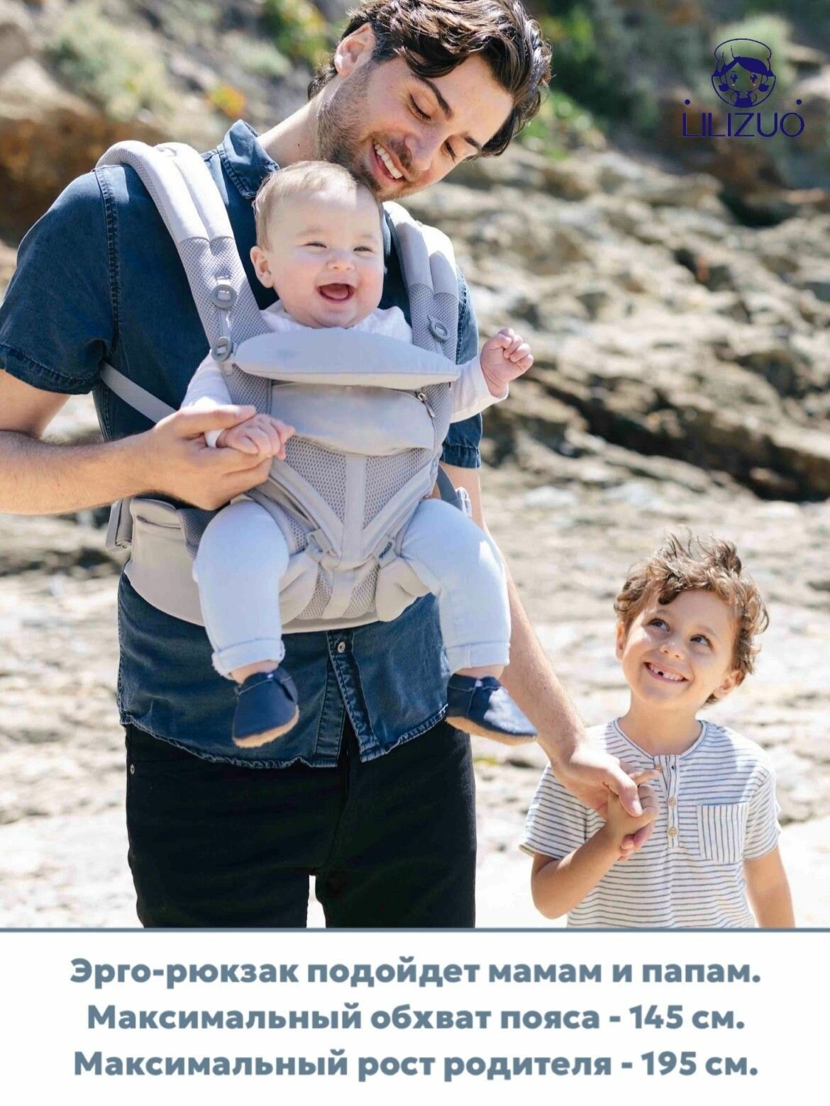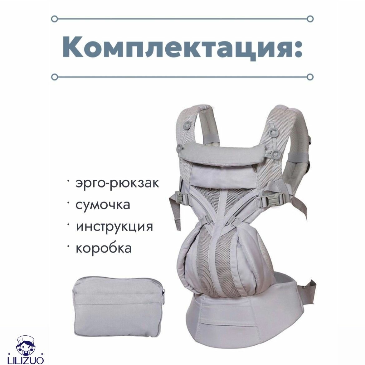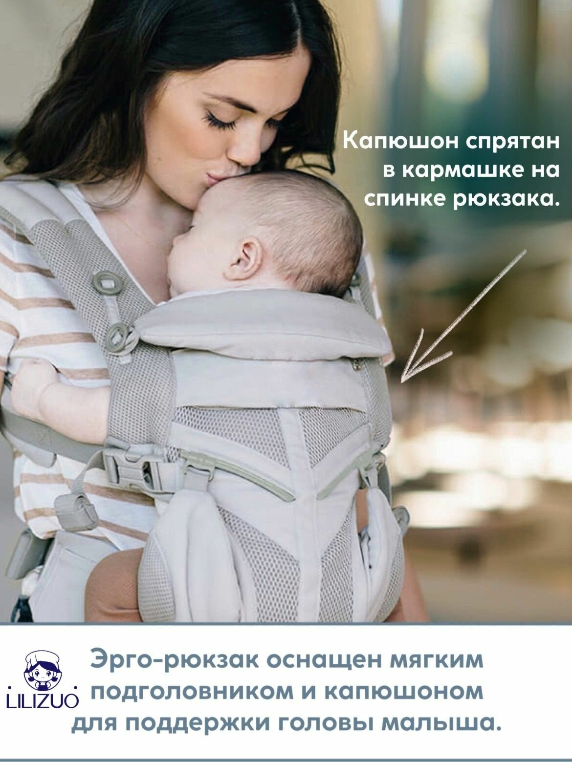| Потница под лямками | Сетчатые вставки AirFlow диаметром 8 см | Циркуляция воздуха даже при +30°С |