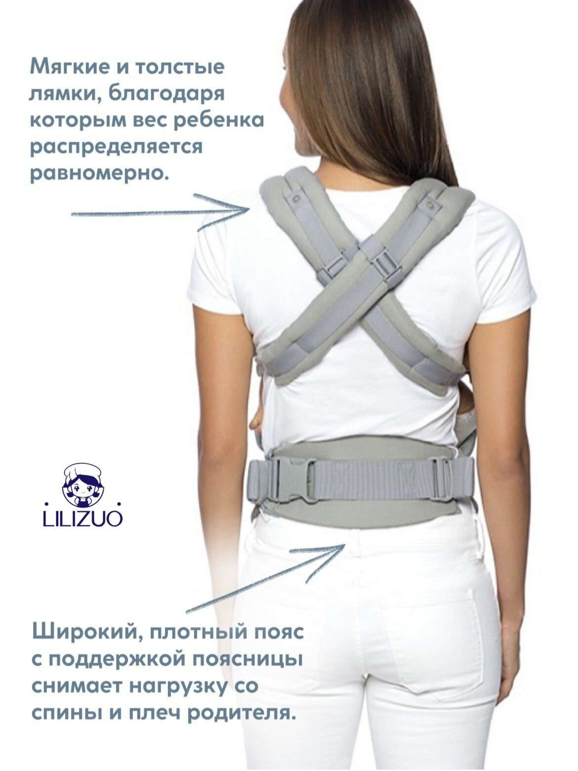 - Ремни не выкручиваются - благодаря карманам-фиксаторам в поясничной зоне