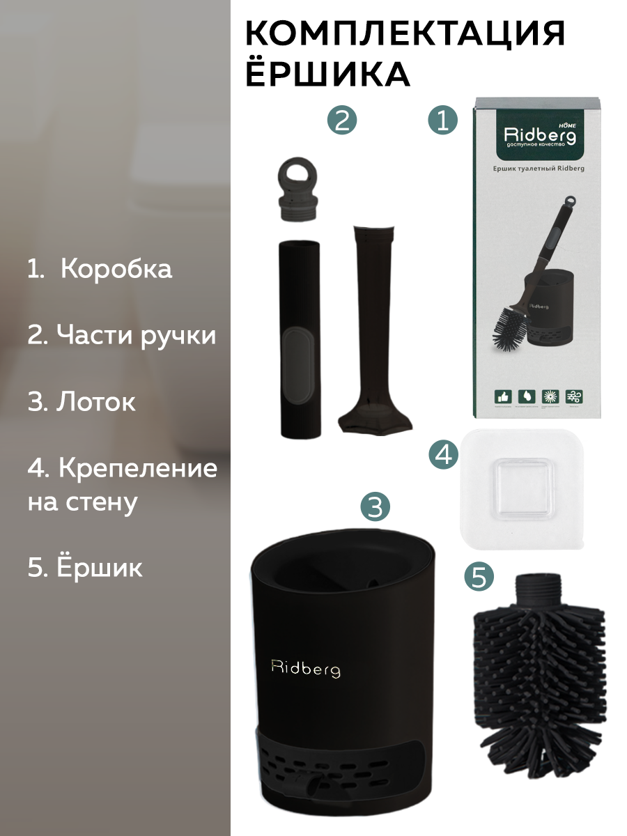 Система ершик + подставка Ridberg решает 3 ключевые проблемы традиционных решений: предотвращение брызг благодаря закрытому контейнеру, гигиеничное хранение за счет вертикального подвешивания и минимальный контакт с поверхностями при монтаже. Эксперимент с применением флуоресцентного маркера (проведён НИИ Сантехники, 2023) показал:
