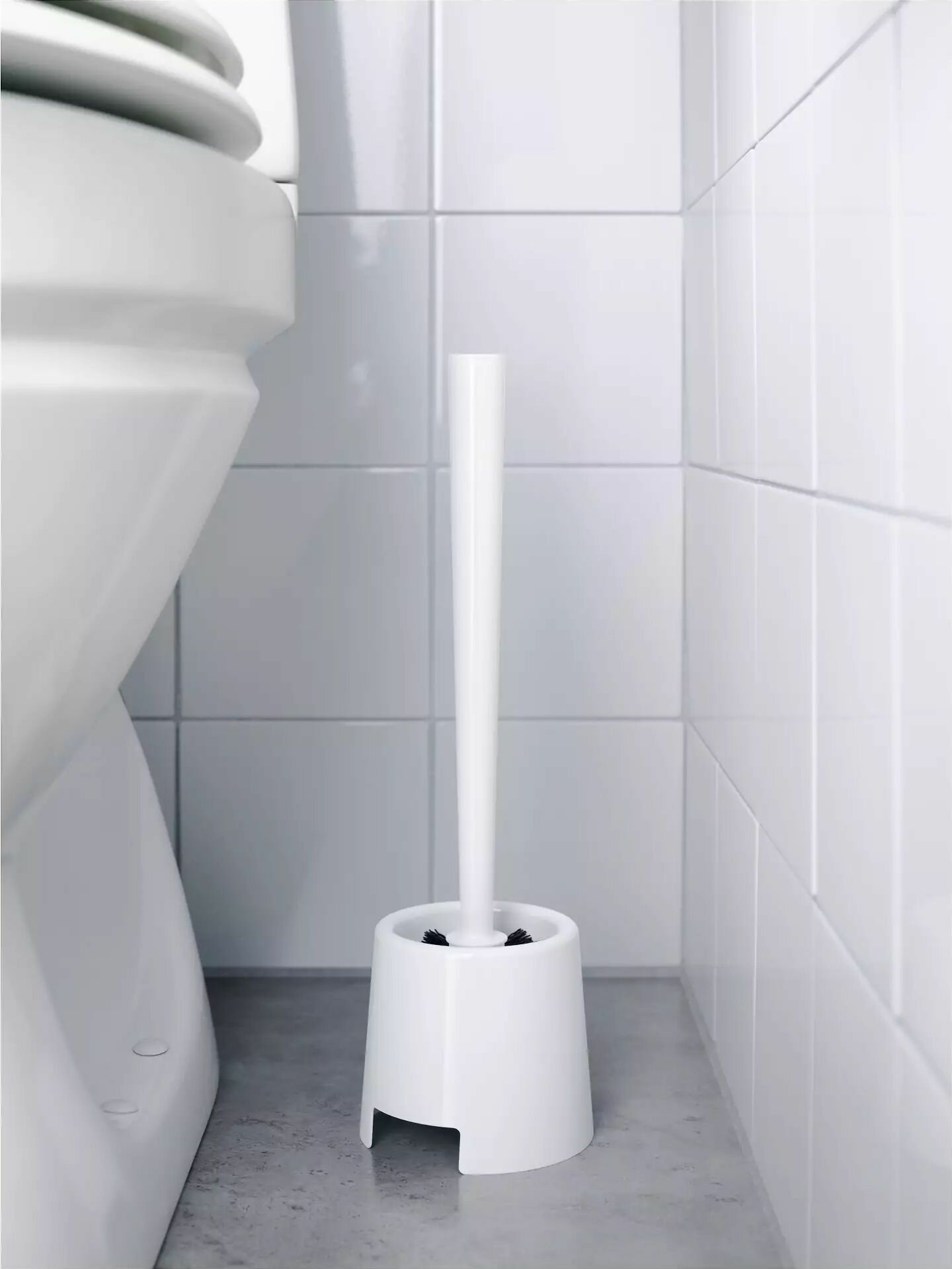 Решение: Конусообразная конструкция подставки с наклоном стенок 115° направляет капли в центральную часть. Опционально можно использовать абсорбирующий коврик IKEA RENS шириной 22 см.