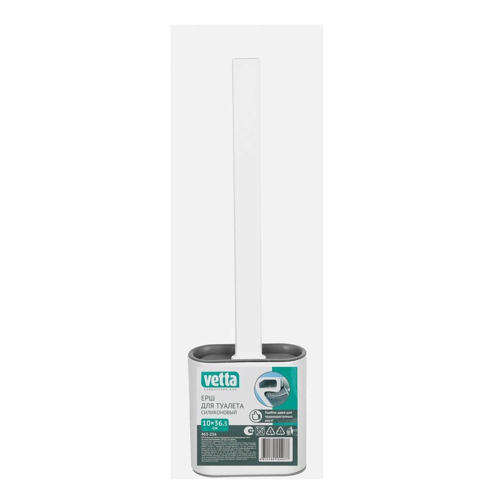 Ёршик VETTA размера 10х36,5 см оптимален для проникновения под ободок унитаза — изогнутая форма силиконовой щетины захватывает труднодоступные участки сантехники. Пластиковая рукоятка длиной 28 см создаёт рычаг для усиления нажима при удалении налёта. Подвесная система крепления экономит 65% площади по сравнению с классическими моделями на подставке.