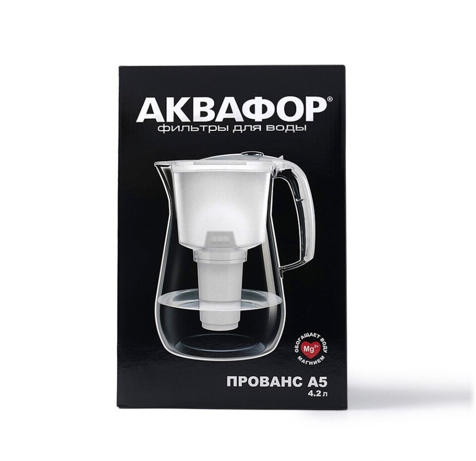 - Аквафор Прованс А5: двухкомпонентный фильтр (уголь + ионообменная смола), скорость фильтрации 0.3 л/мин