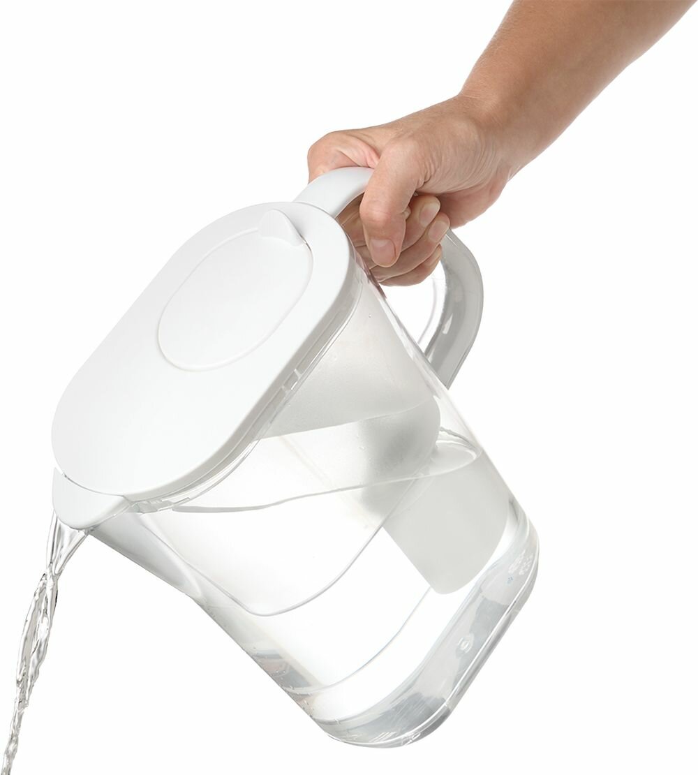 - Скорость фильтрации — 0.3 л/мин, что быстрее аналогов Brita Marella (0.25 л/мин) благодаря инновационной крышке-воронке
