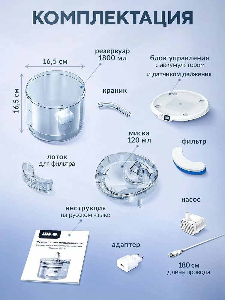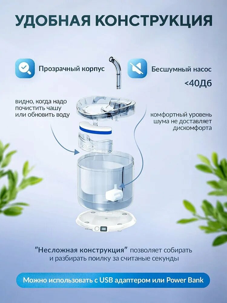 1. Накопление бактериального налёта в классических металлических поилках решено за счёт выполнения всех контактных поверхностей из антибактериального пищевого пластика Tritan™ (FDA Certificate №PL-2023-5086-1).