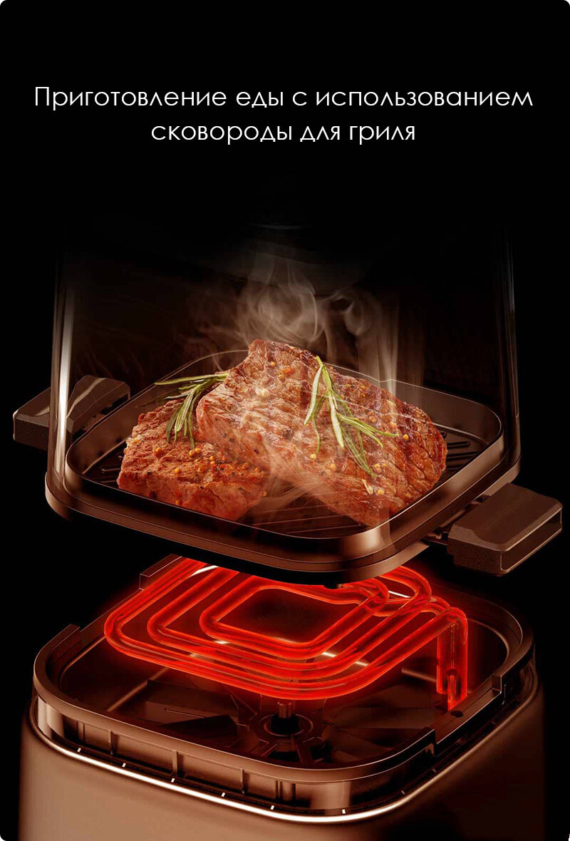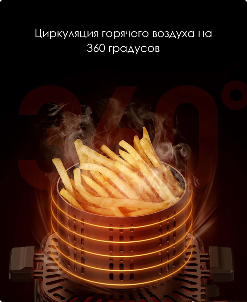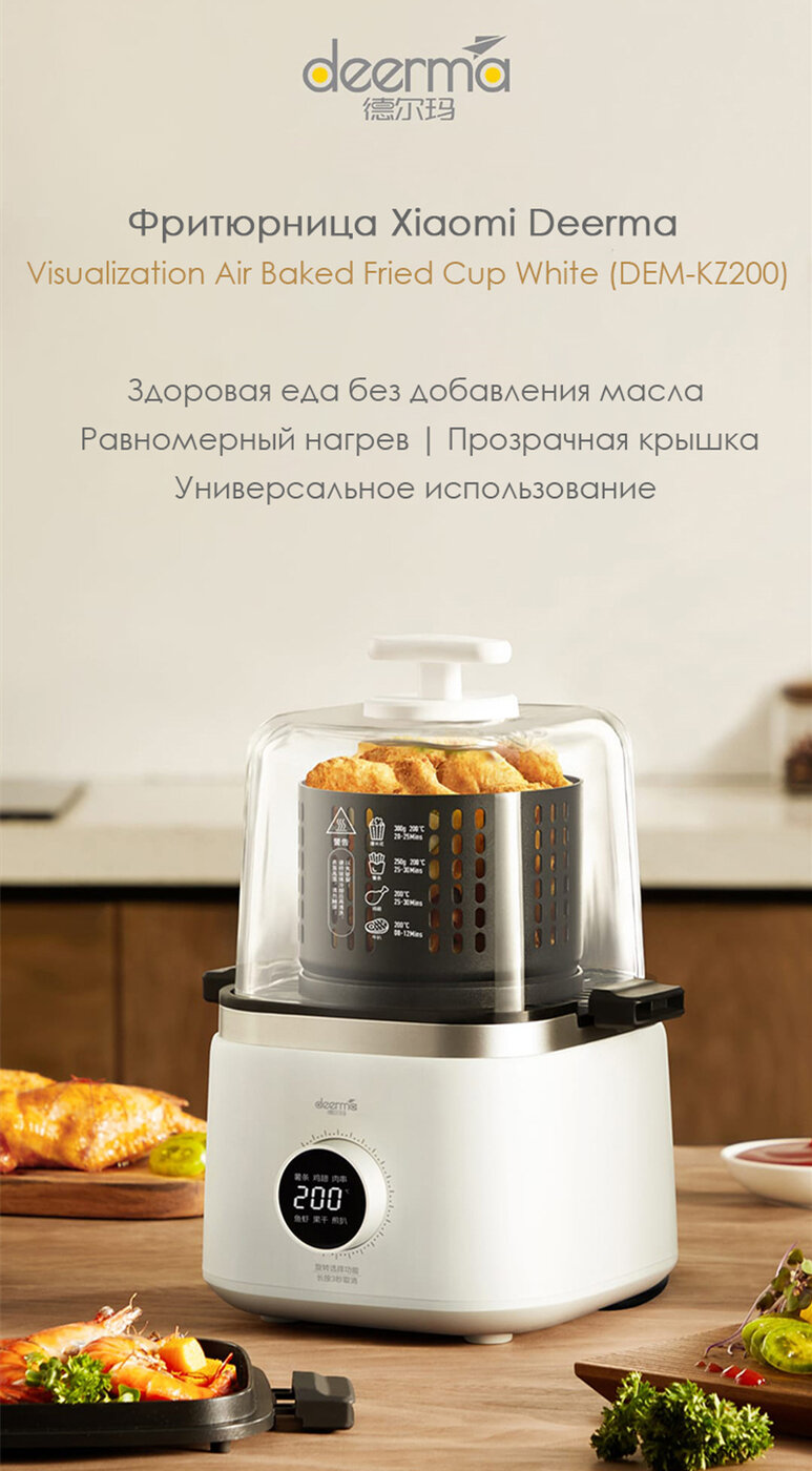 Фритюрница Xiaomi Deerma Visualization Air Baked использует систему нагрева воздуха до 200°C с равномерной циркуляцией благодаря Digital Cyclone Technology. В сравнении с аналогами: