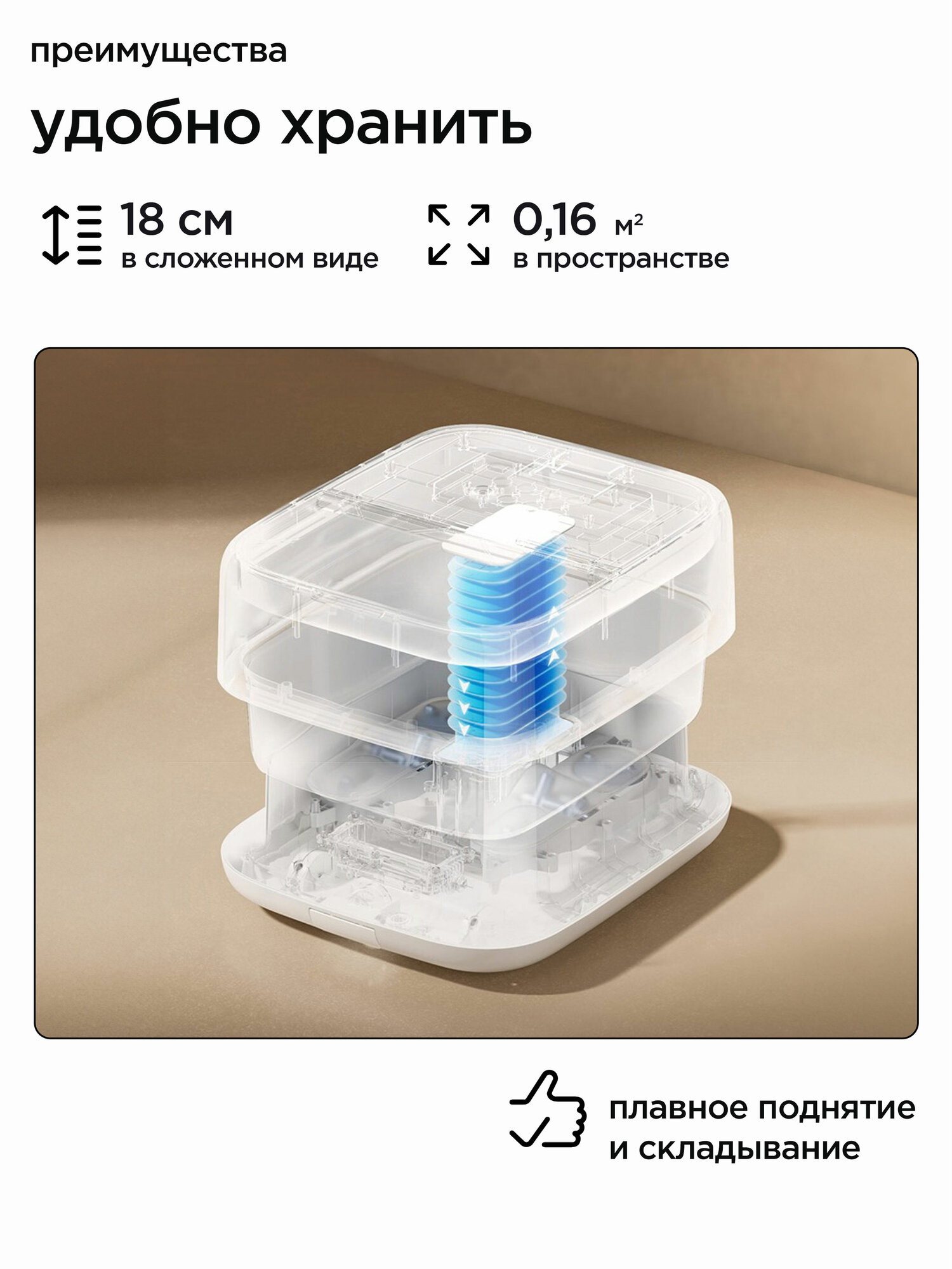 - Компактность 44.5×37.6×35 см — размещается под стандартными столами