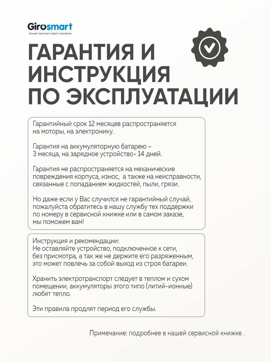 - Запасные части в наличии — мотор-колеса, платформы, зарядные устройства
