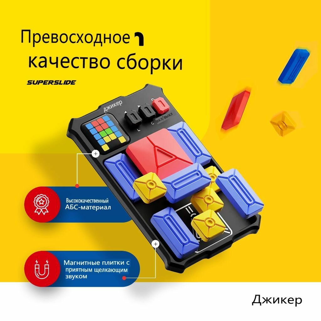 Трековая система перемещения с 12 степенями свободы создаёт 527 вариативных комбинаций. По шкале сложности ProfBrain тестерами присвоен уровень 7 из 10 – оптимальный баланс для развития стратегического мышления у подростков 12+ и взрослых. Компактный формат 8×8×3 см позволяет носить интеллектуальный тренажёр в кармане.