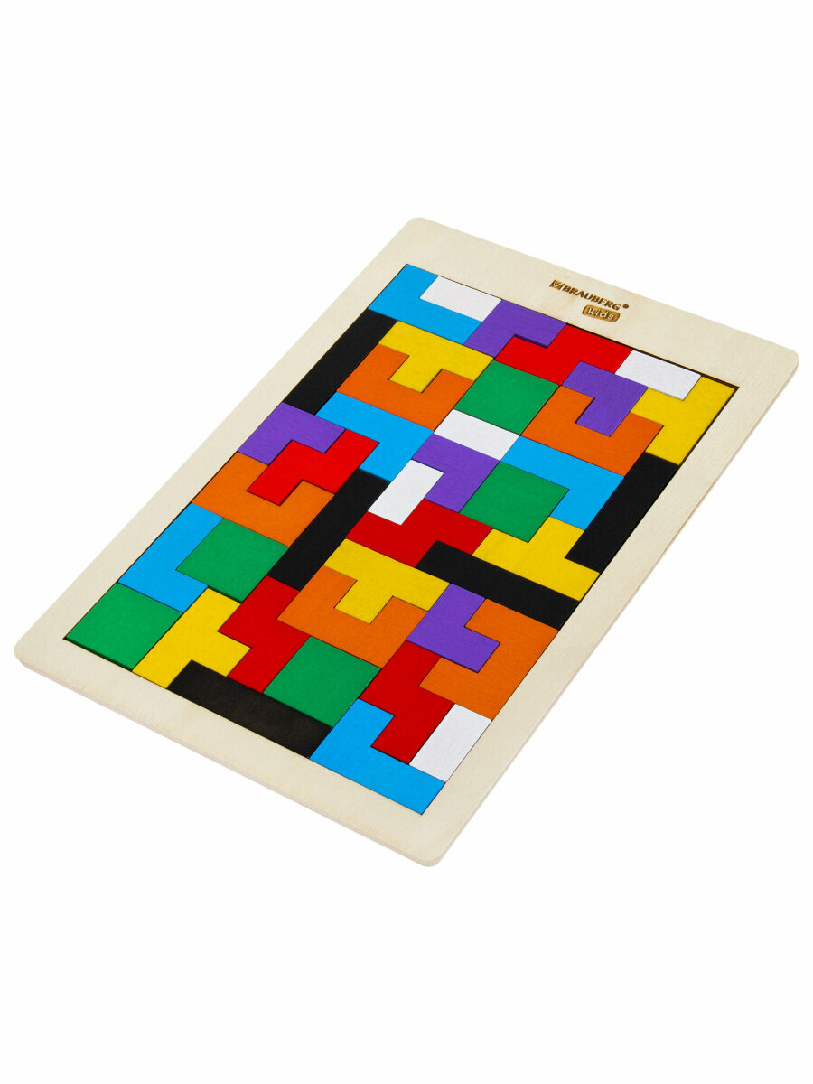 40 фигур с магнитами, по форме повторяющих элементы игры Тетрис, позволяют создавать сотни комбинаций на 18х27 см панели. В отличие от бумажных пазлов:
