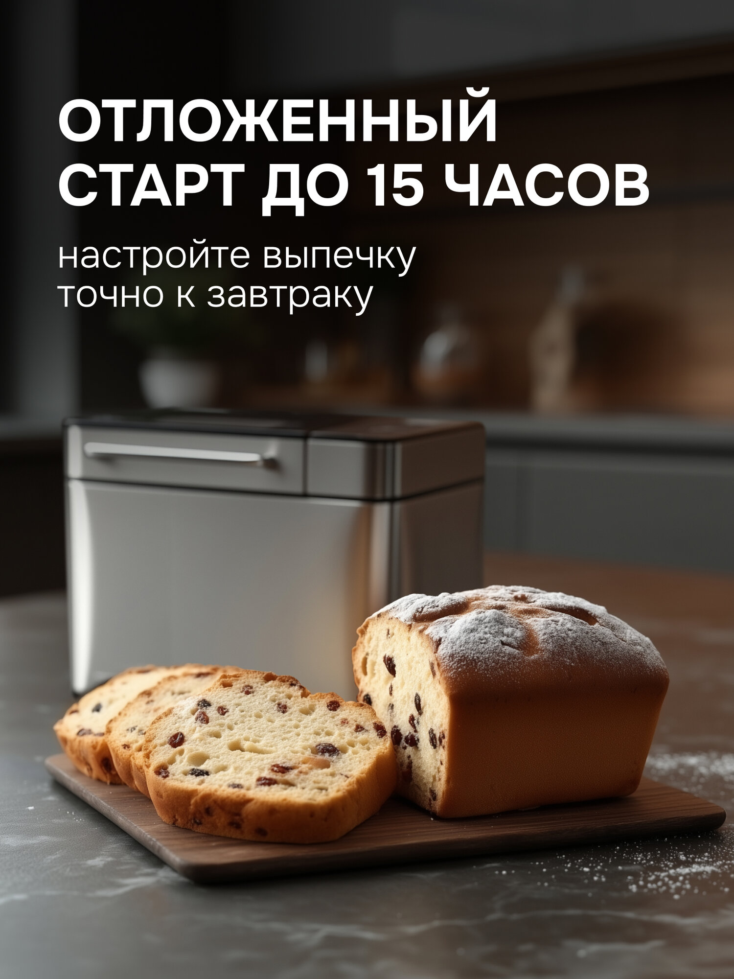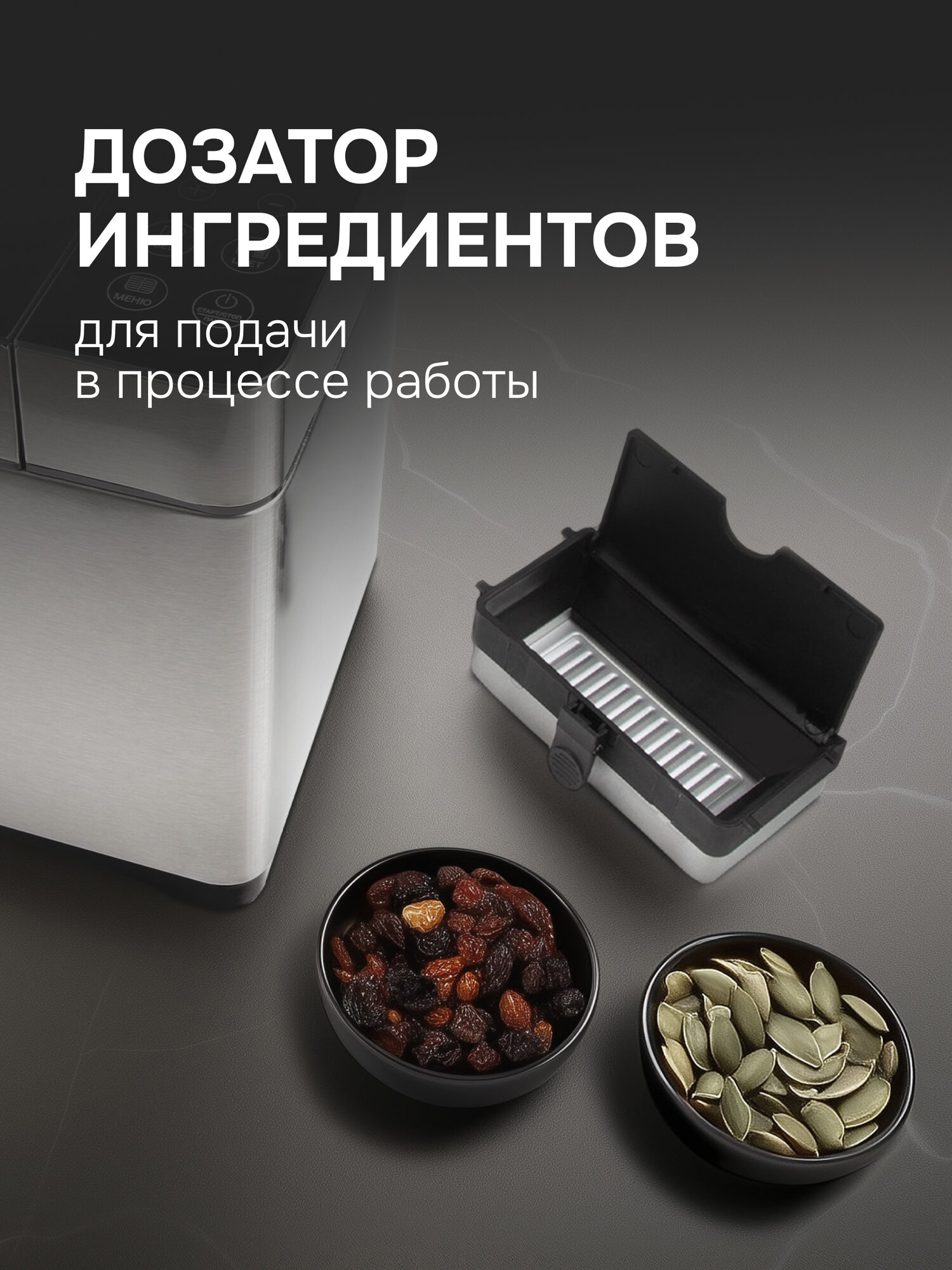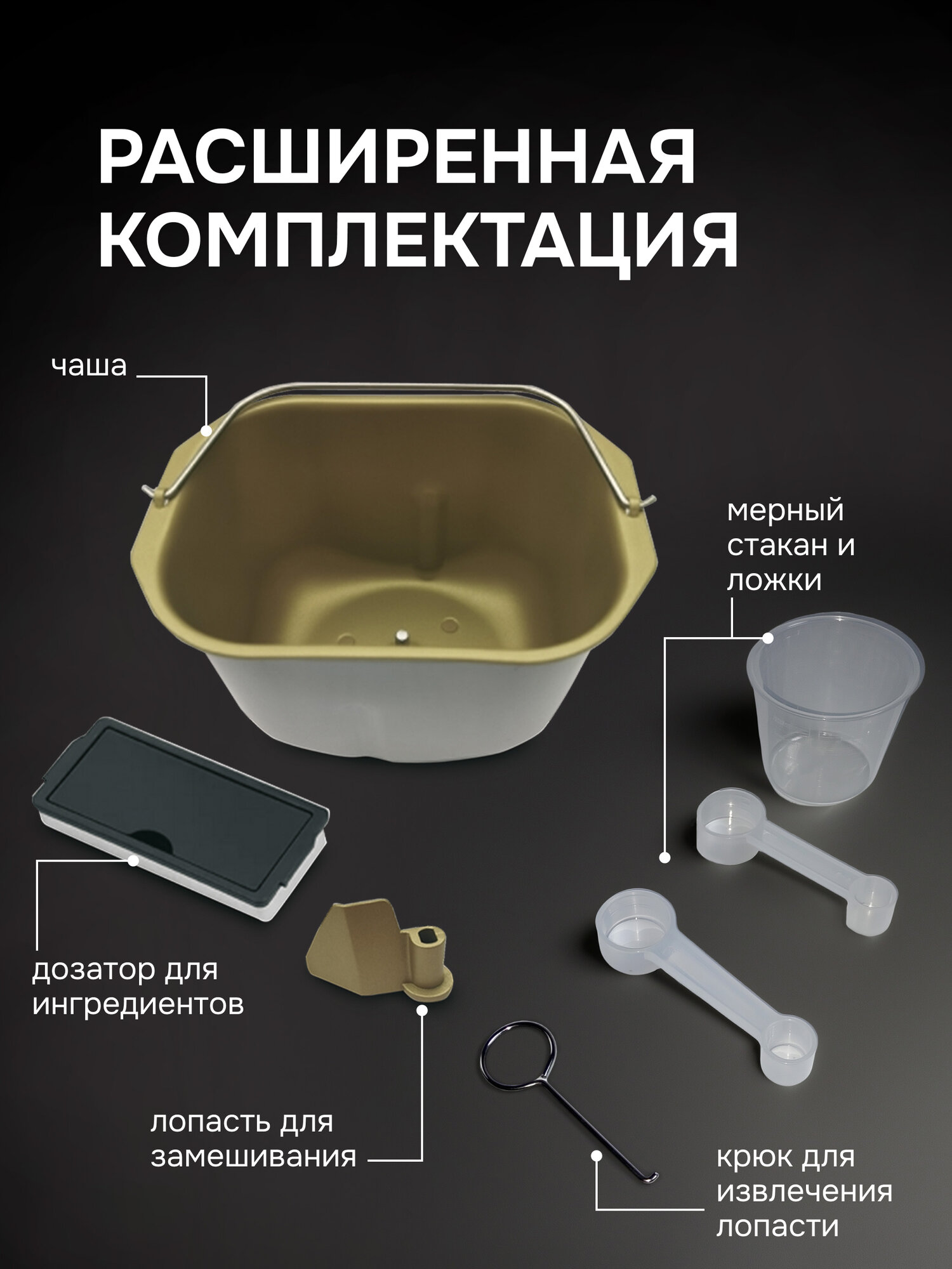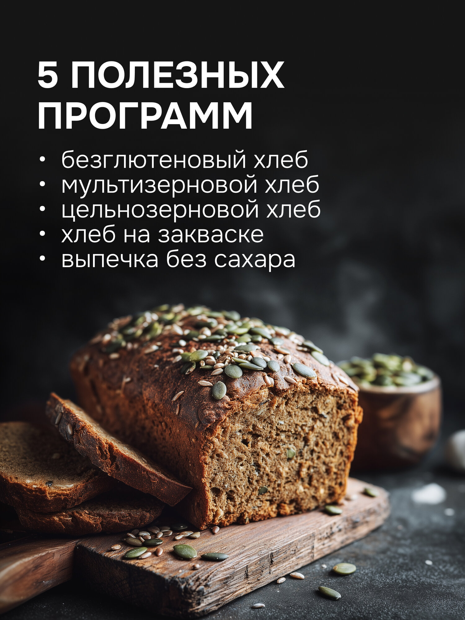 - 19 автоматических программ: классический хлеб, французский багет, безглютеновая выпечка, кексы, джем, йогурт