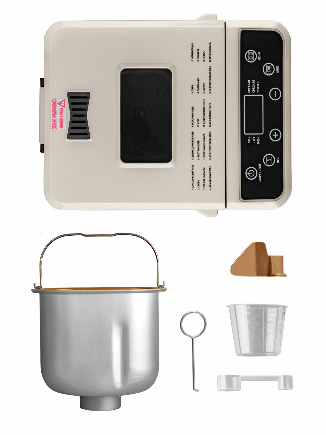 - Сенсорная панель с режимами Bright/Dark для 22 программ выпечки