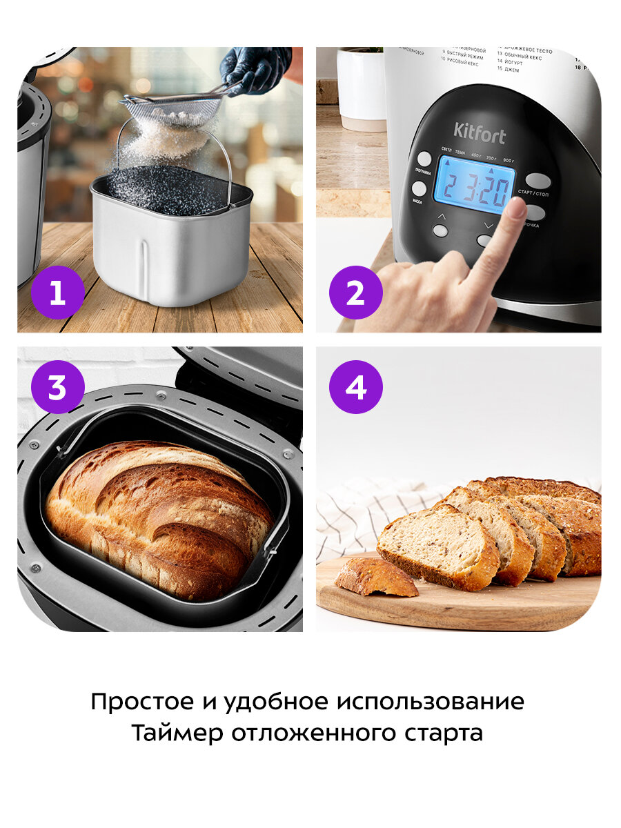 Kitfort KT-315 vs Moulinex OW2401: В автотестах "Эльдоблога" режим бездрожжевого теста давал +17% к подъему теста благодаря коррекции времени замеса.