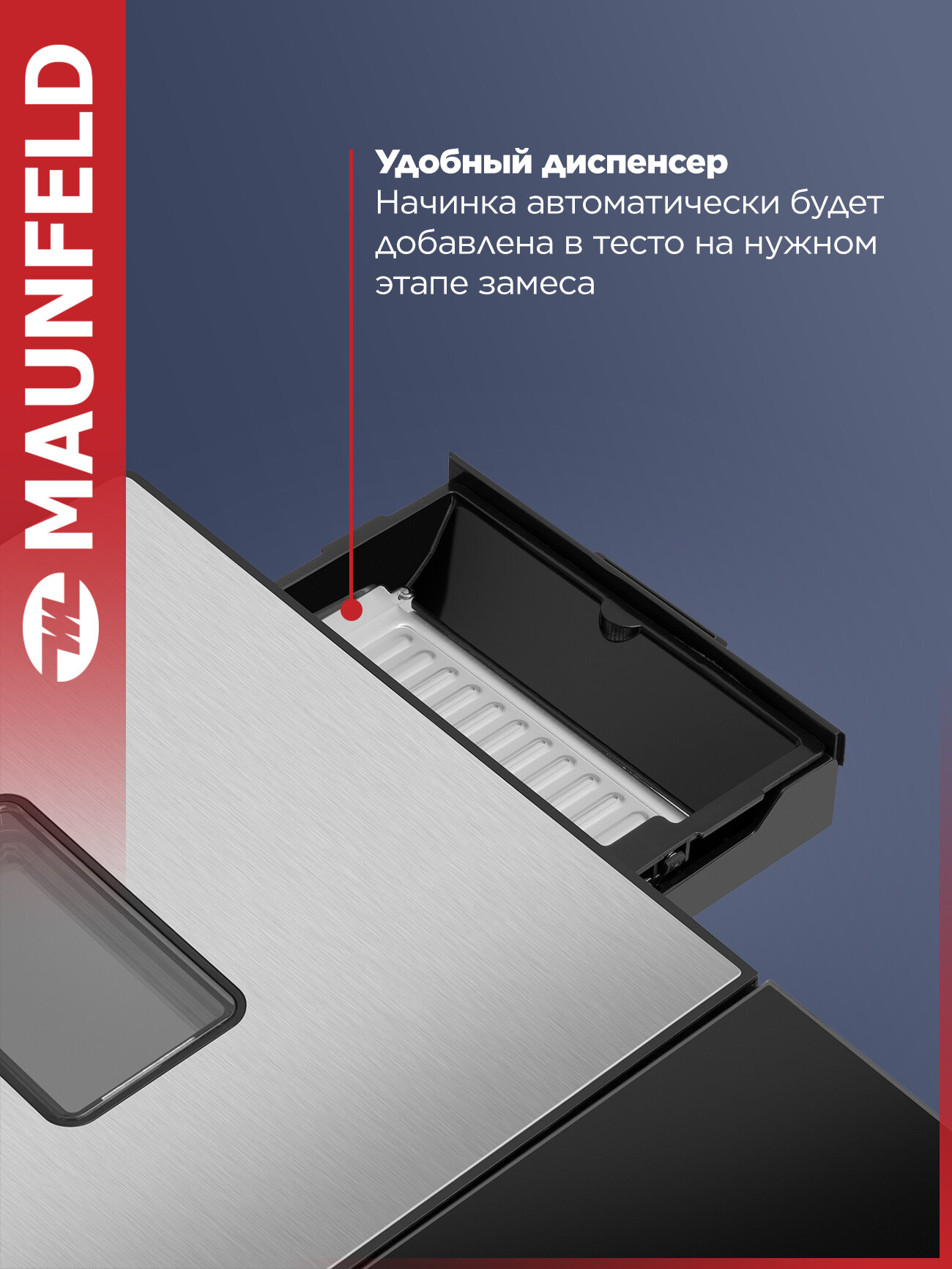 Уникальная система диспенсера автоматически добавляет сухофрукты/орехи на этапе замешивания. Сравним с моделями конкурентов: