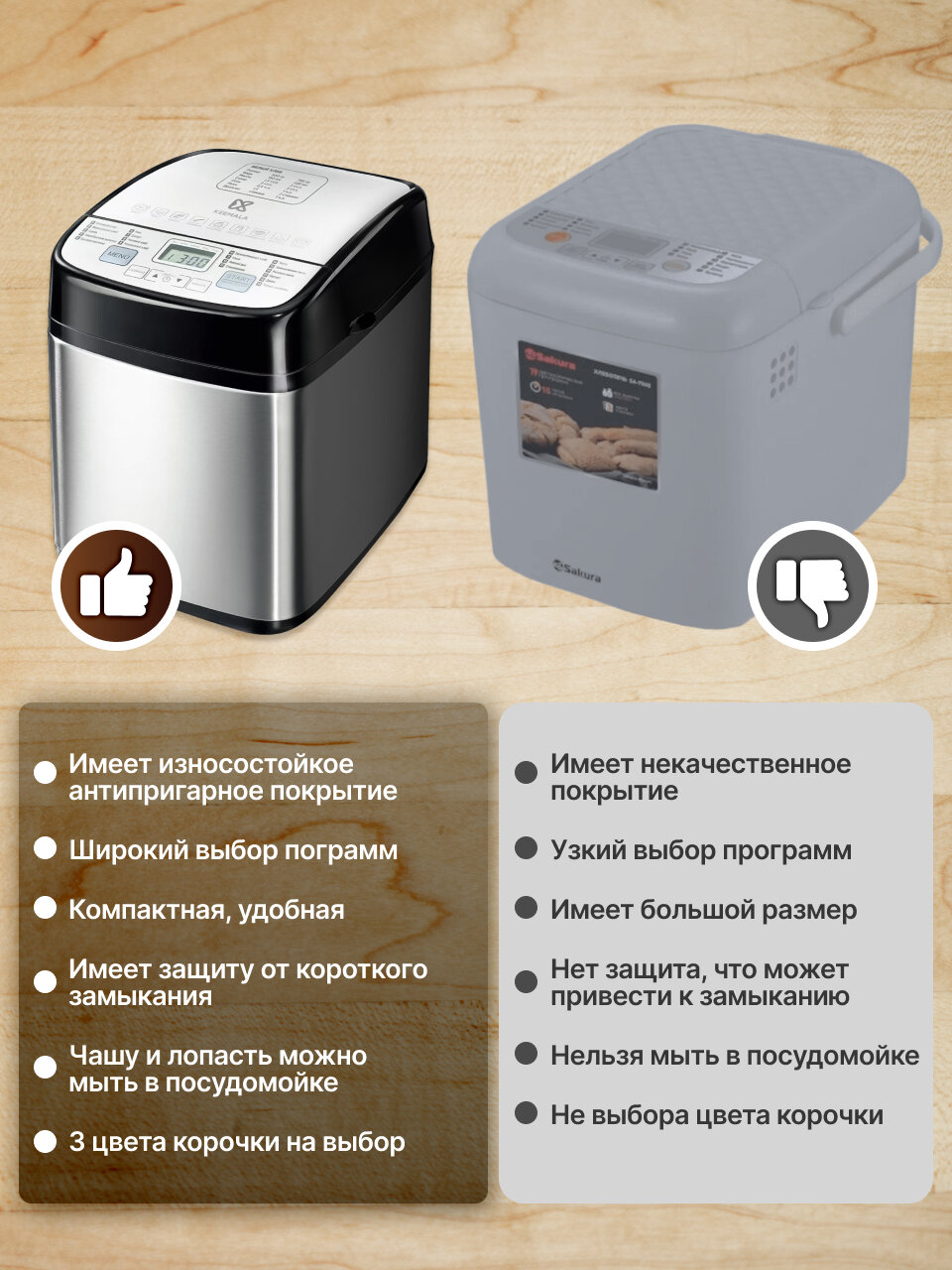 Ежедневное использование хлебопечки становится комфортным благодаря: