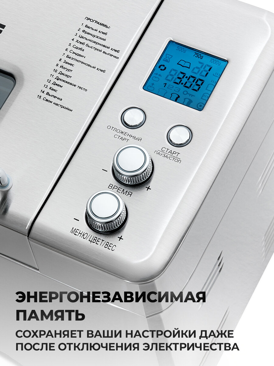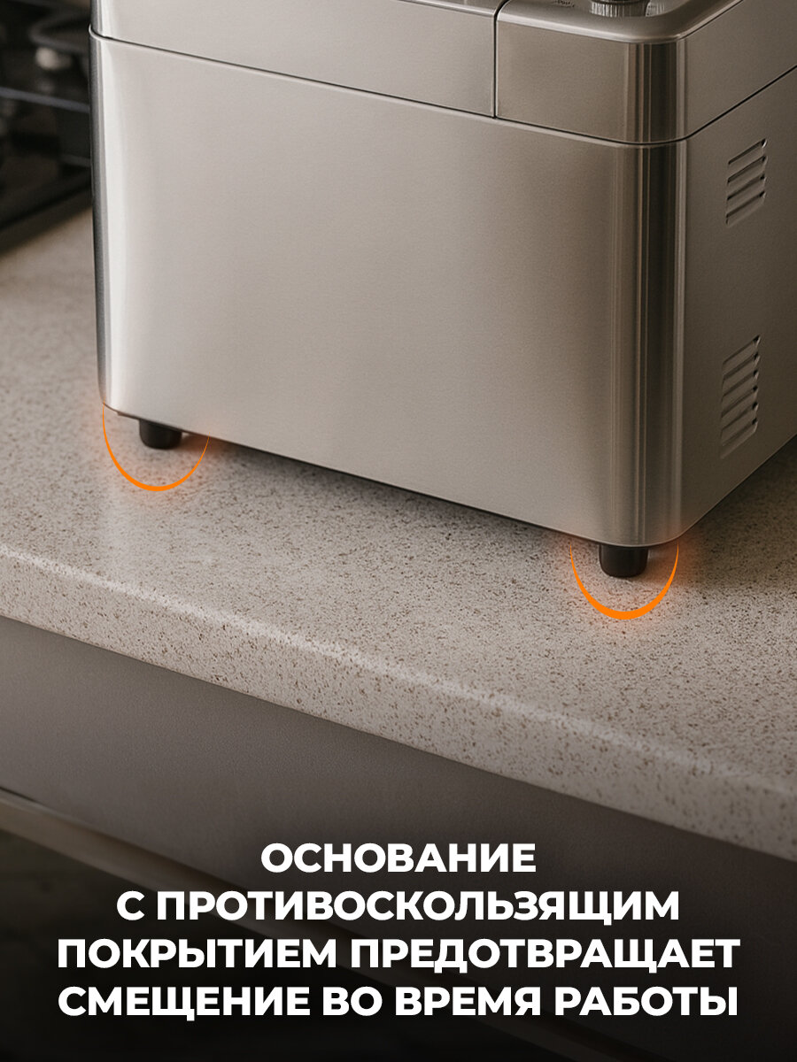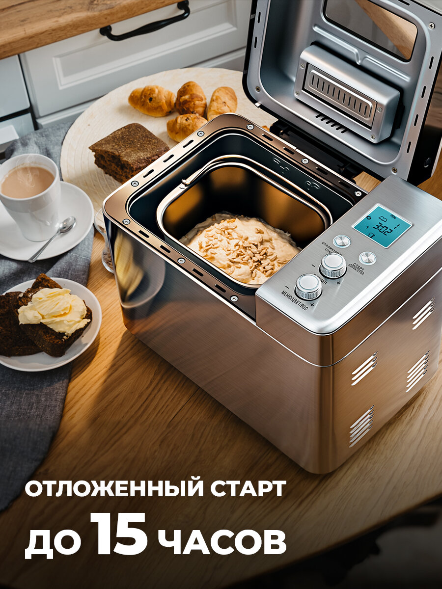 Уровень шума 48 дБ при замесе в 1.5 раза тише бюджетных аналогов. Двухканальная вентиляция предотвращает конденсатообразование – проблема 70% хлебопечек в сегменте до ₽15,000.