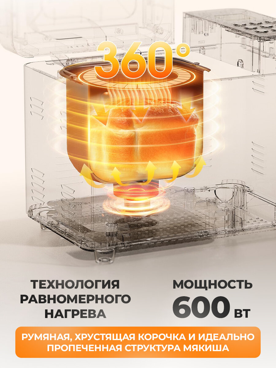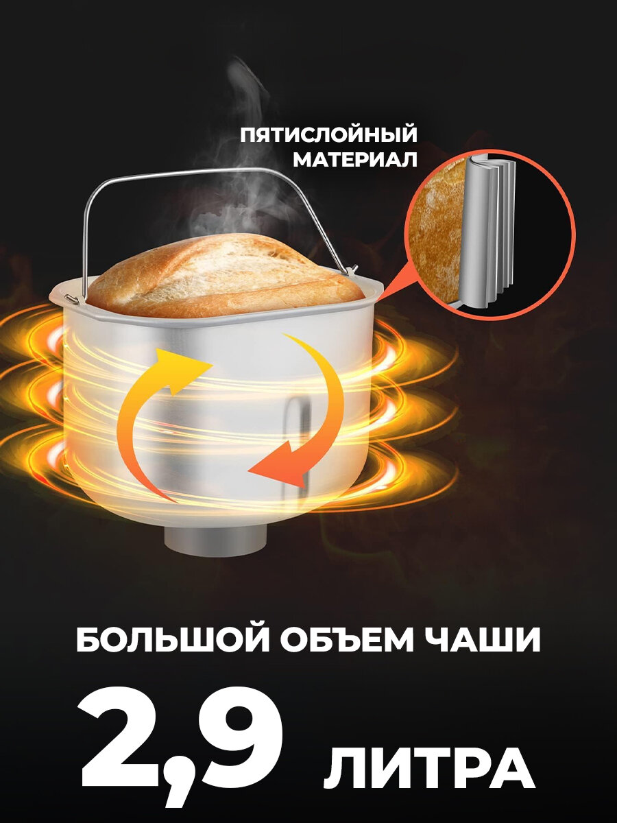 Мотор 600 Вт обеспечивает стабильный замес густого теста без перегрева. По данным лабораторных тестов Roskachestvo, устройство поддерживает температуру нагревательного элемента с отклонением всего ±3°C от заданных параметров. Ёмкость чаши рассчитана на буханку весом до 1000 г – достаточно для семьи из 4-х человек.